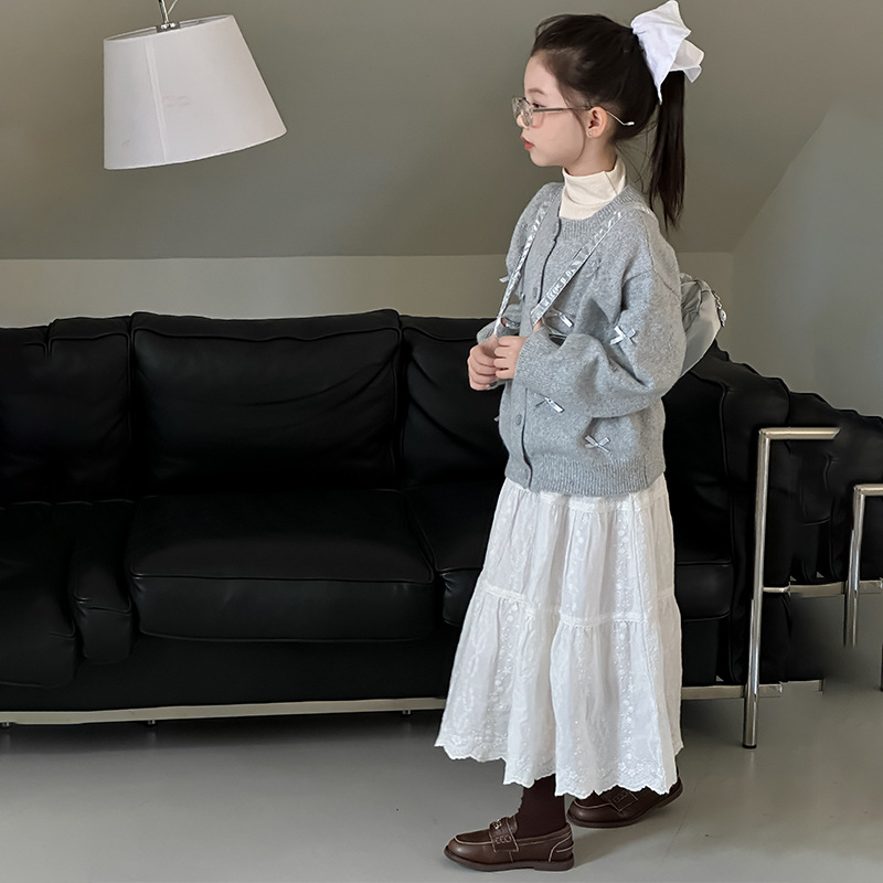 여아용 코트 봄가을 2025 신상품 어린이 초가을 의류 가디건 스웨터 큰 아이 니트웨어 가을옷
