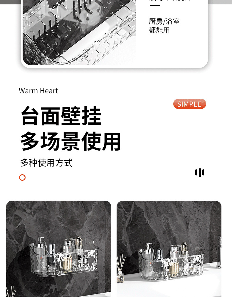 투명한 배수 저장 상자 펀치없는 휴대용 설치 가정용 화장실 벽 장착 화장품 보관 랙