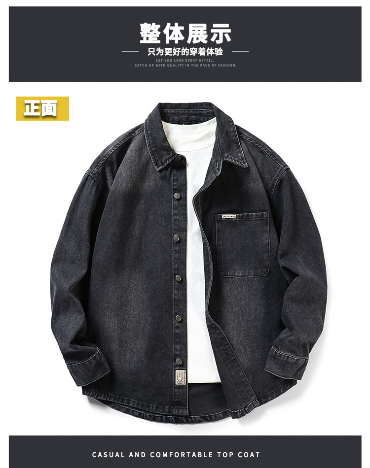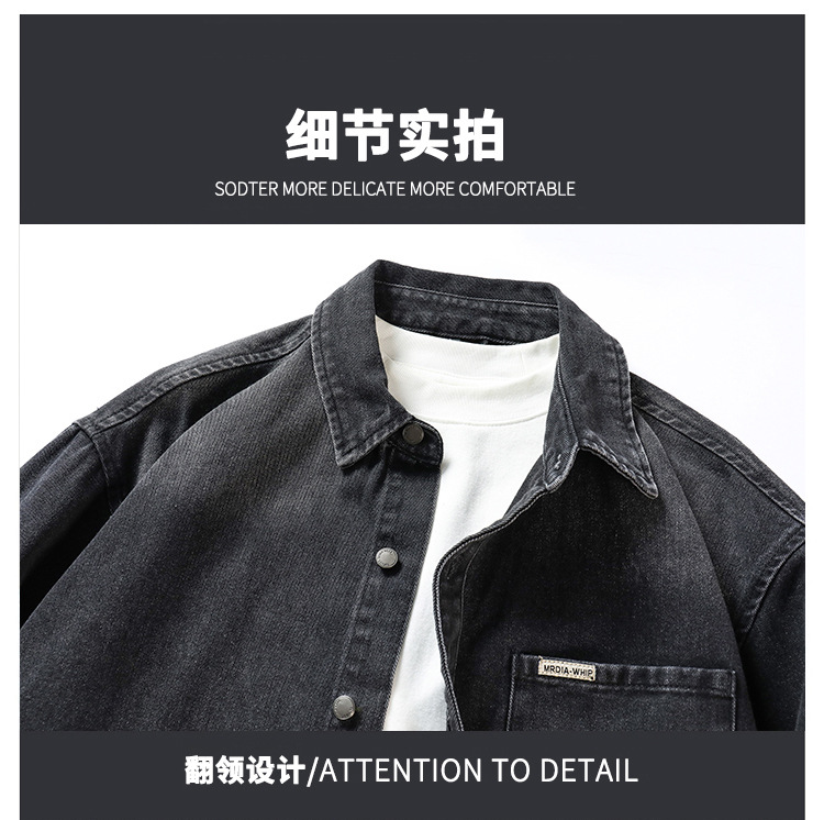 봄과 가을 데님 셔츠 남성용 복고풍 세탁 블랙 유행 느슨한 편안한 옷깃 남성용 미국 스타일 탑 재킷스토어 가기