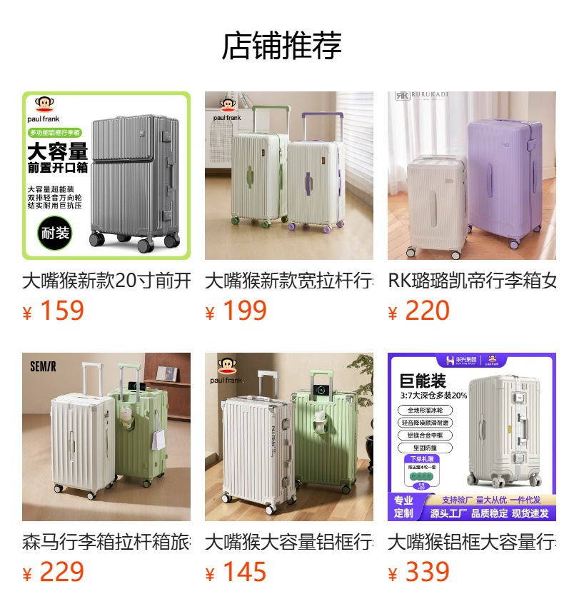 빅마우스 몽키 24inch 대용량 순수 PC 여행가방 깊은 수납공간 방폭 지퍼 20inch 학생 여행용 세관 코드 잠금 여행가방스토어 가기