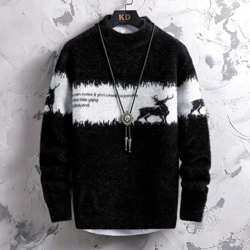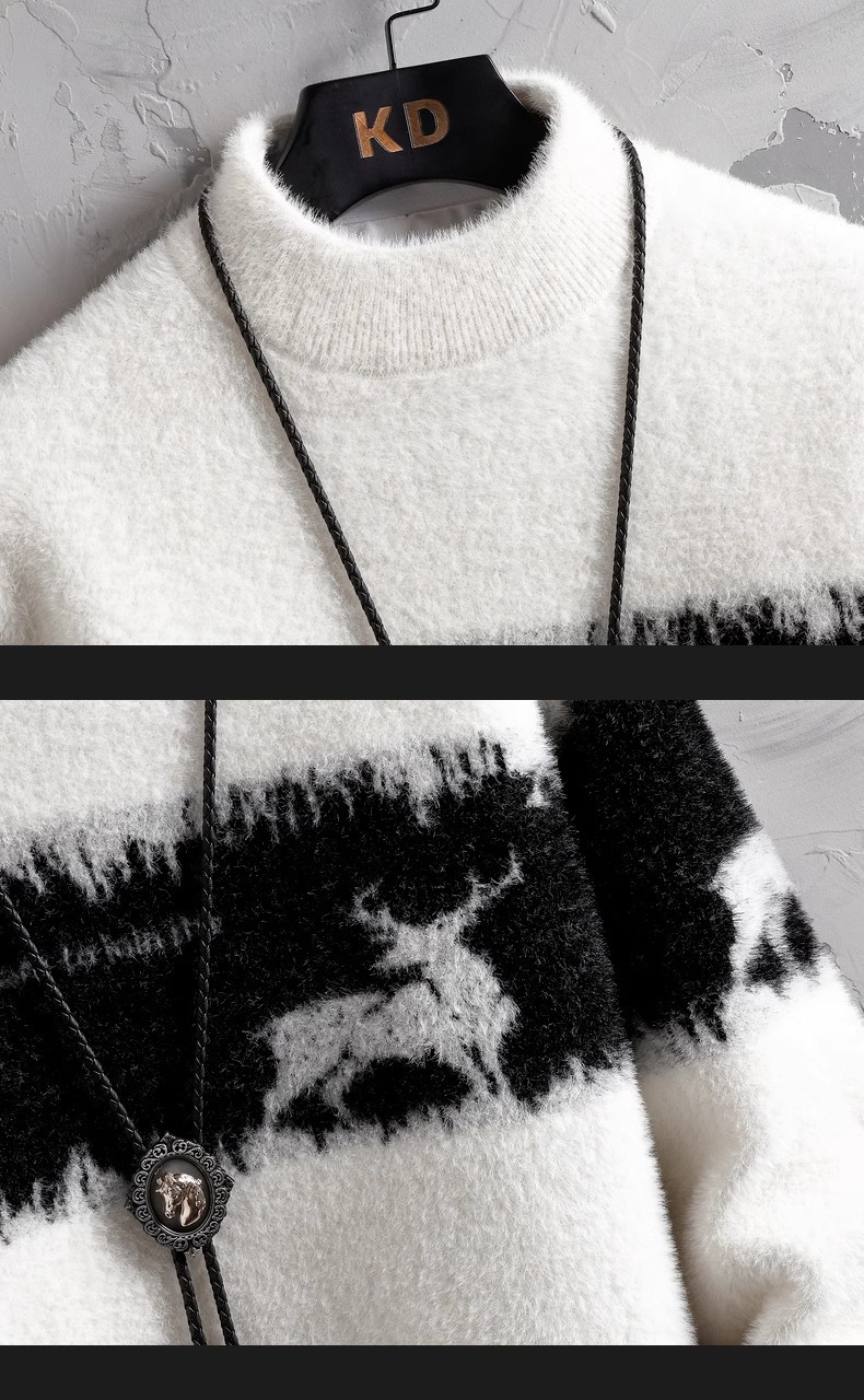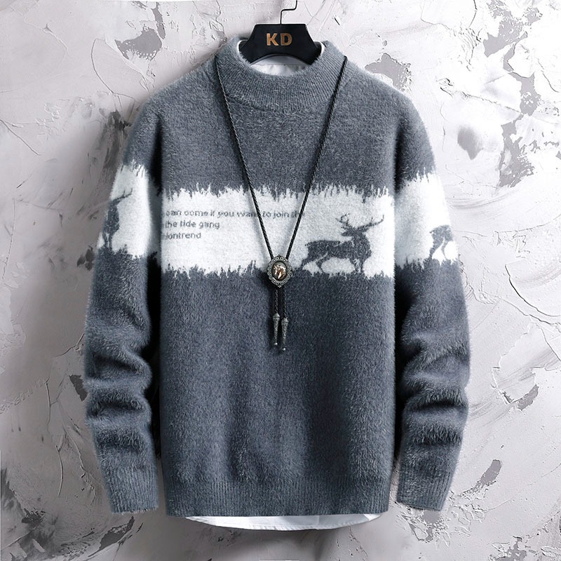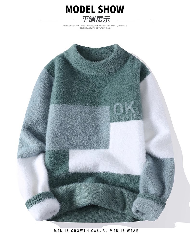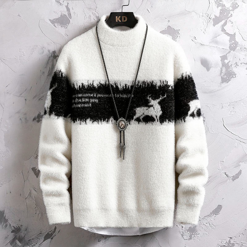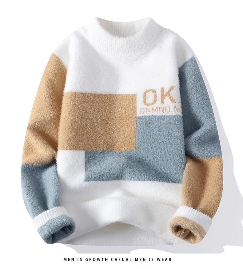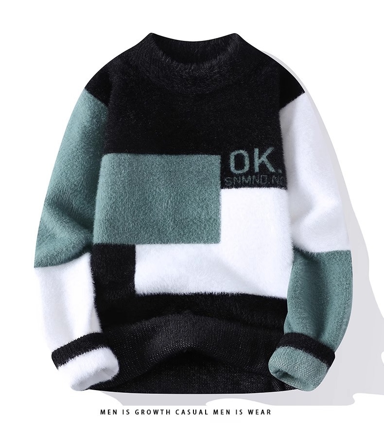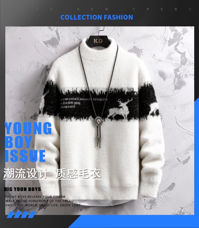 폭발성 스웨터 남자의 가을과 겨울 두꺼운 모방 밍크 스웨터 따뜻한 니트 베이스 셔츠 남성 패션