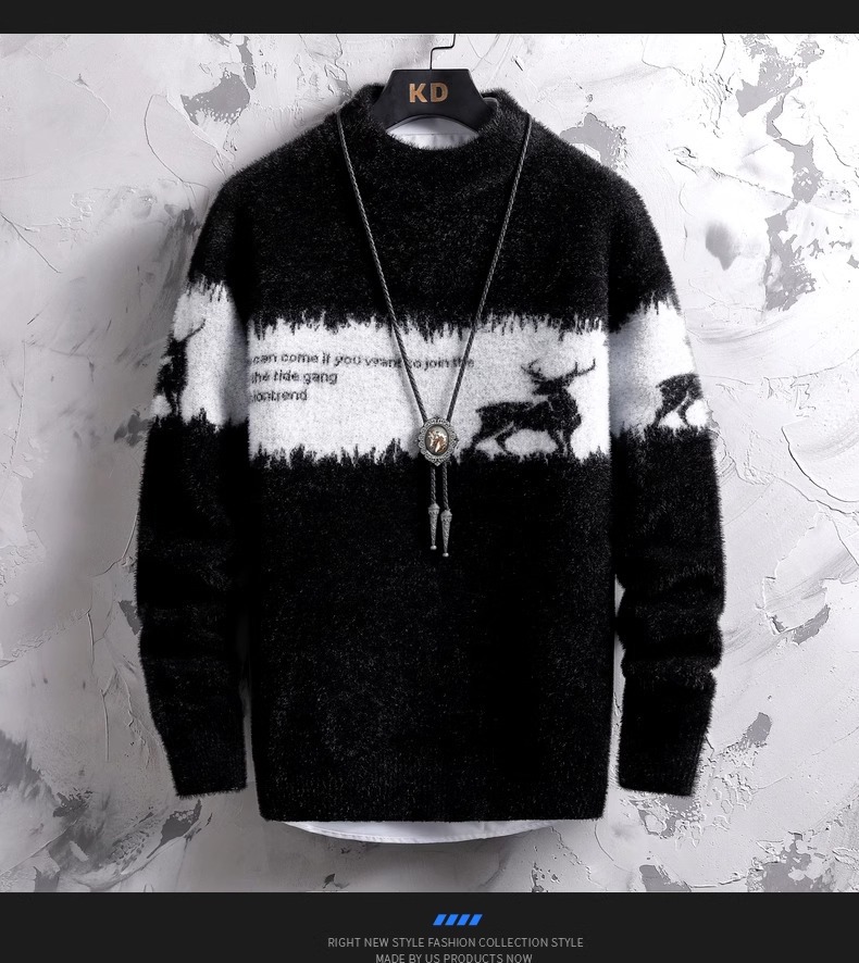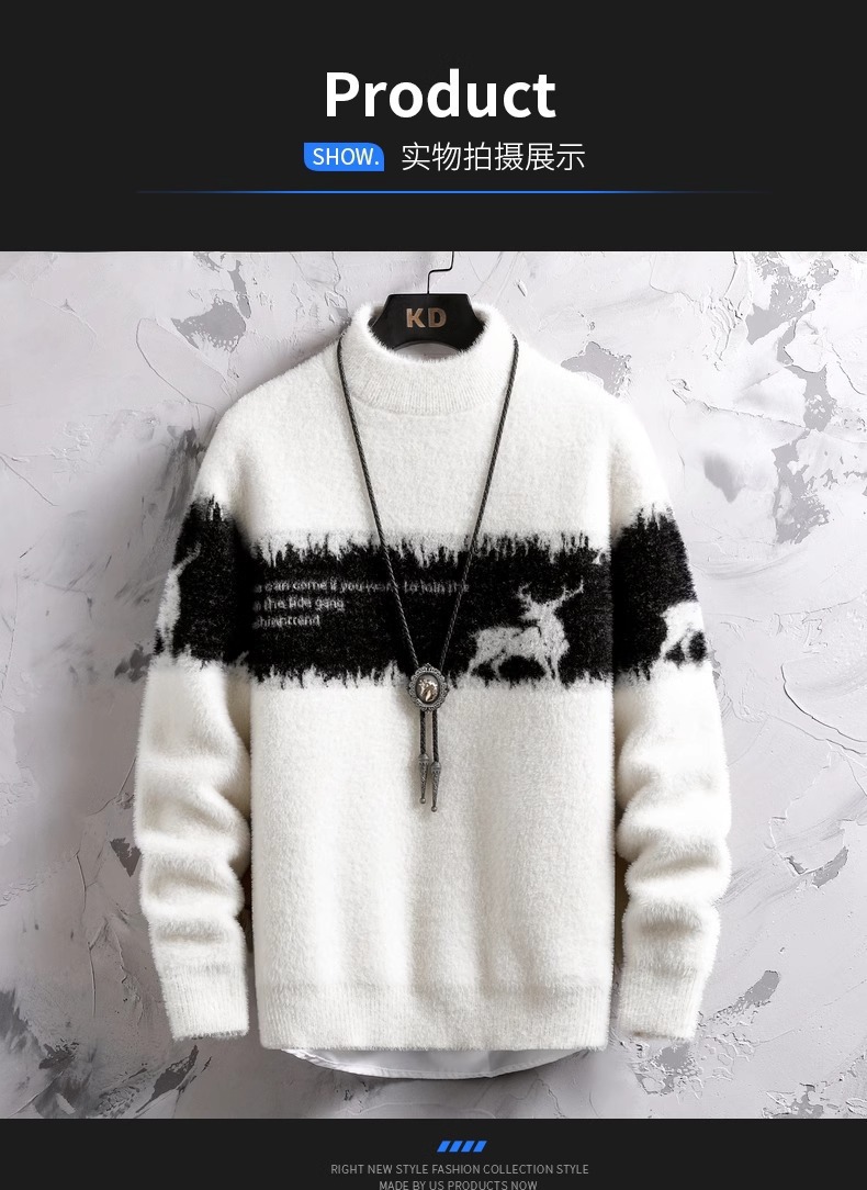 폭발성 스웨터 남자의 가을과 겨울 두꺼운 모방 밍크 스웨터 따뜻한 니트 베이스 셔츠 남성 패션스토어 가기