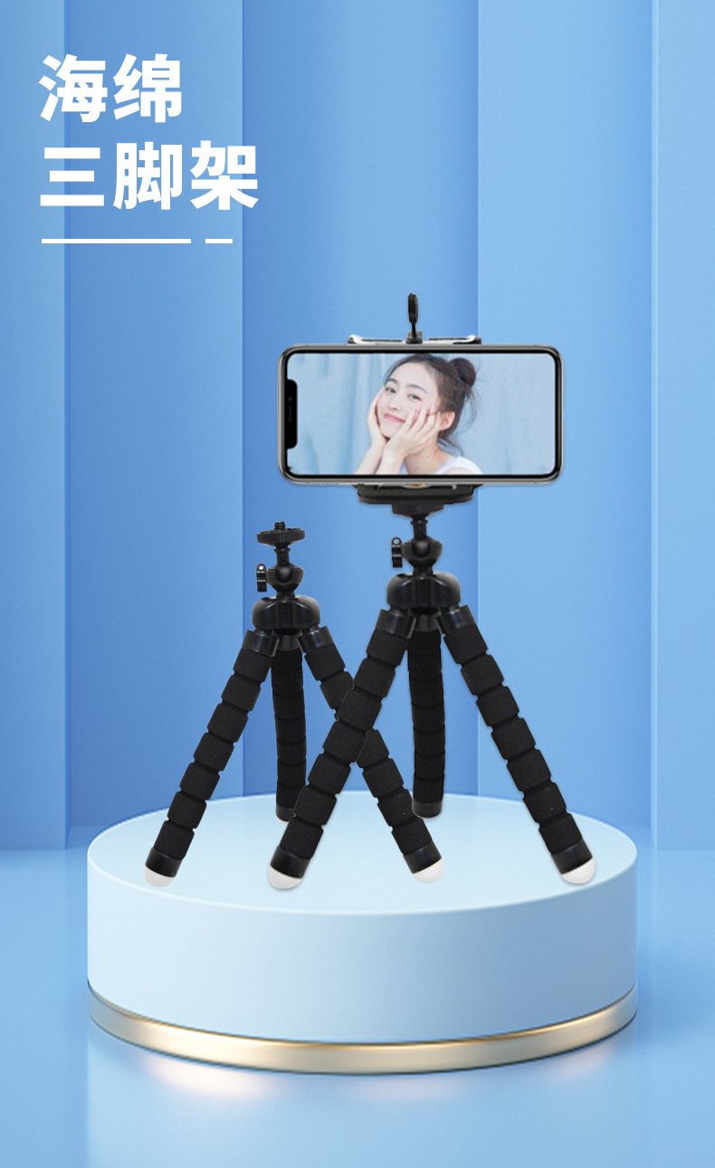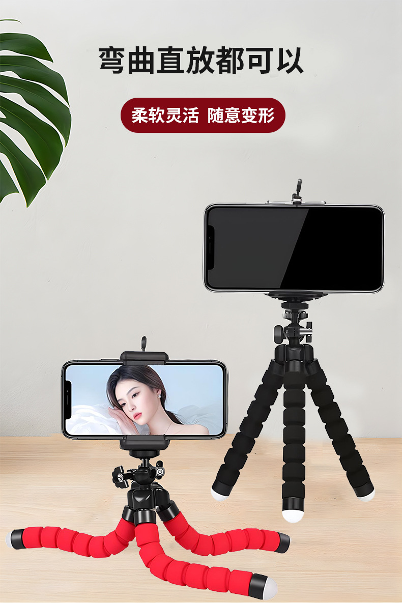 百变便携式八爪鱼手机支架多功能桌面直播带蓝牙海绵八爪鱼三脚架
