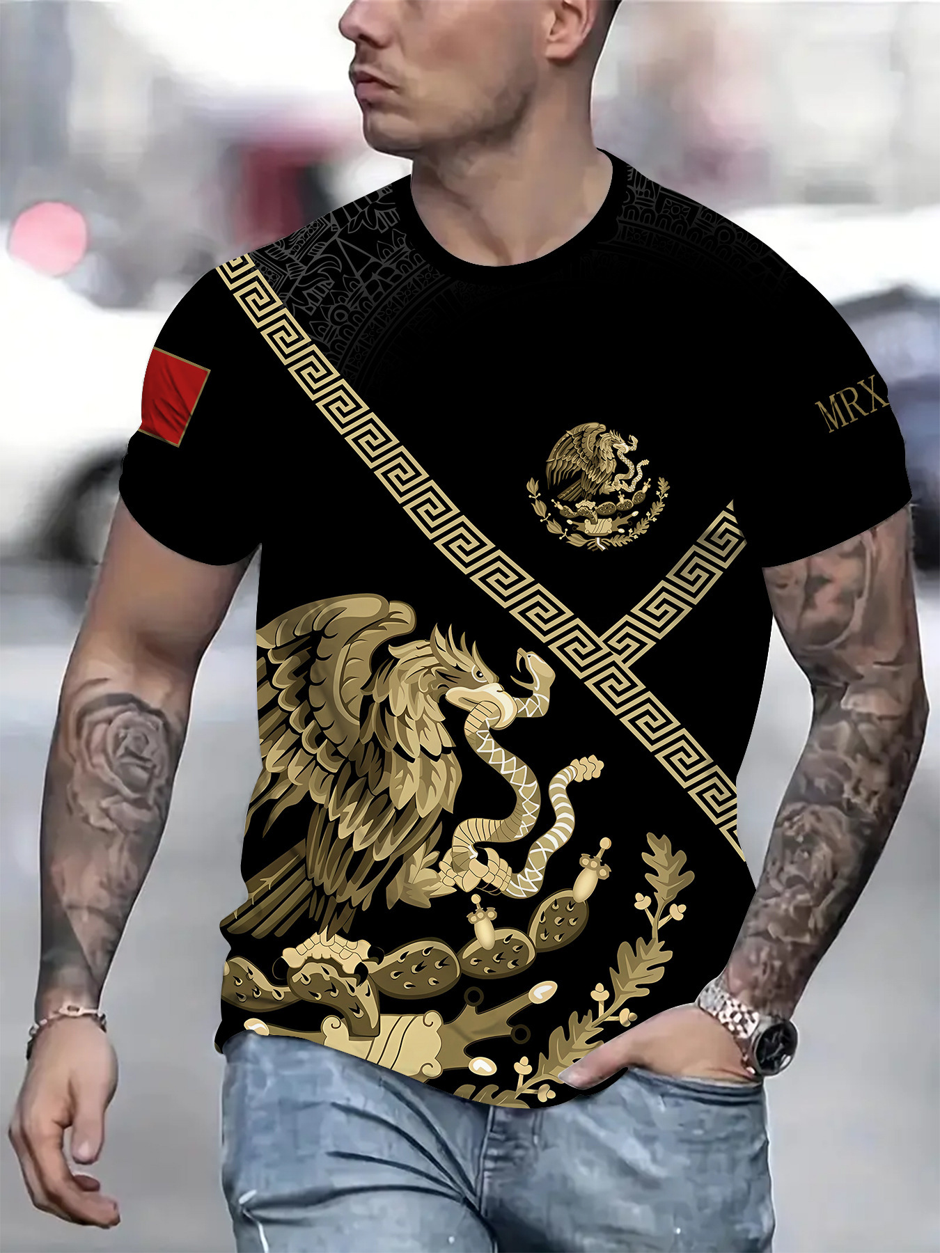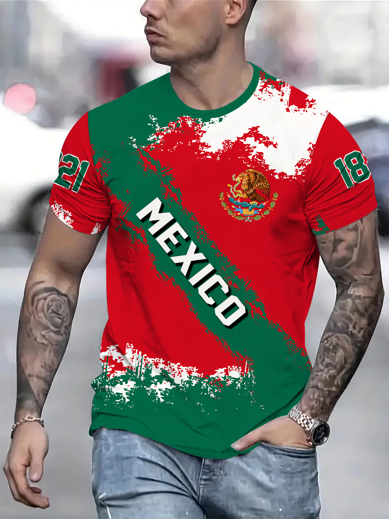 2024 새로운 국경 무역 3D 디지털 인쇄 메쉬 티셔츠 유럽 크기 남성 스포츠 통기성 짧은 소매