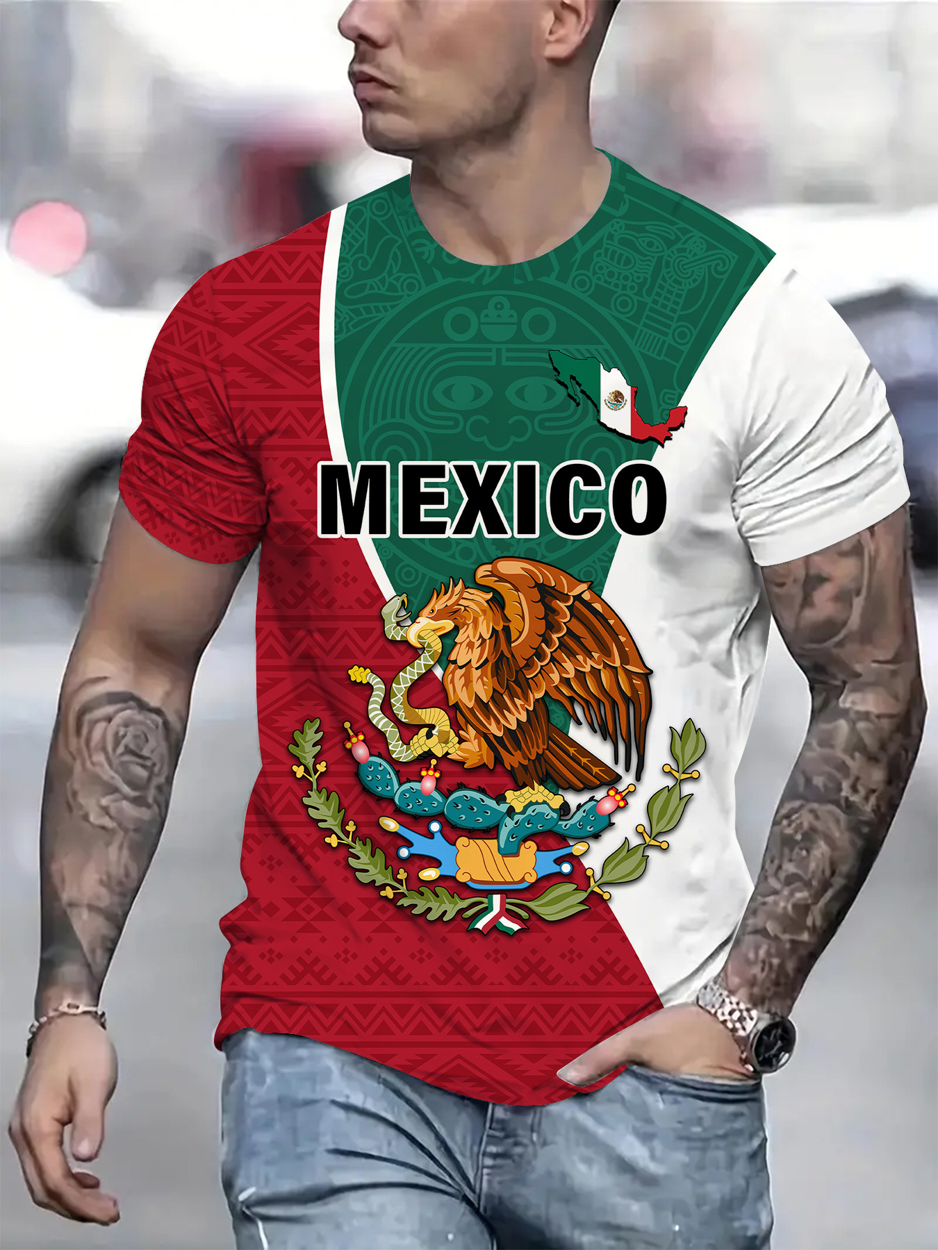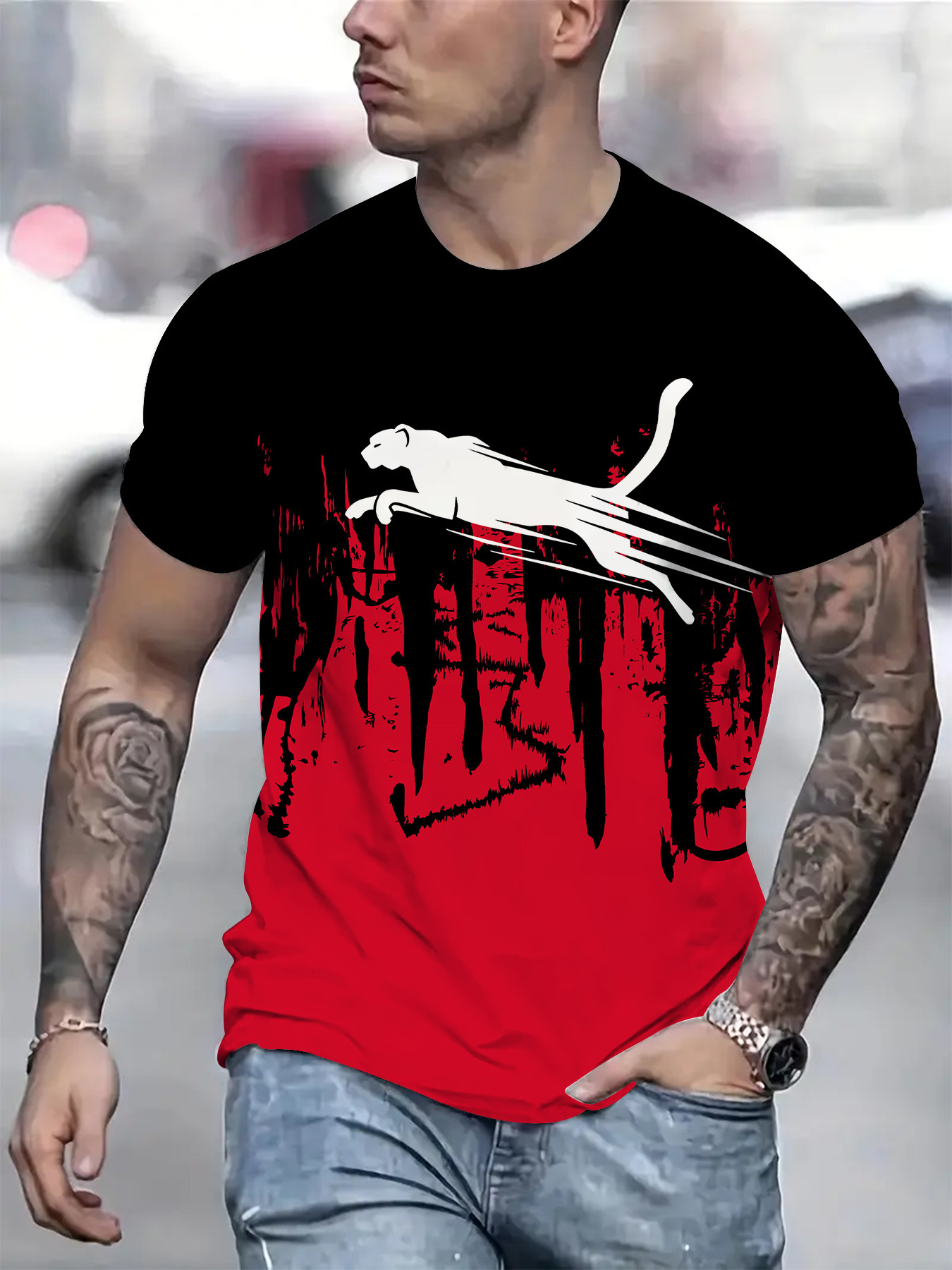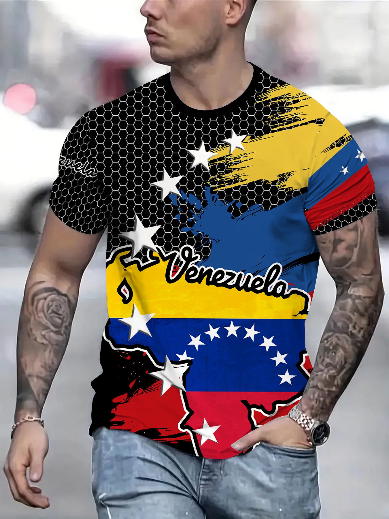 2024 새로운 국경 무역 3D 디지털 인쇄 메쉬 티셔츠 유럽 크기 남성 스포츠 통기성 짧은 소매스토어 가기