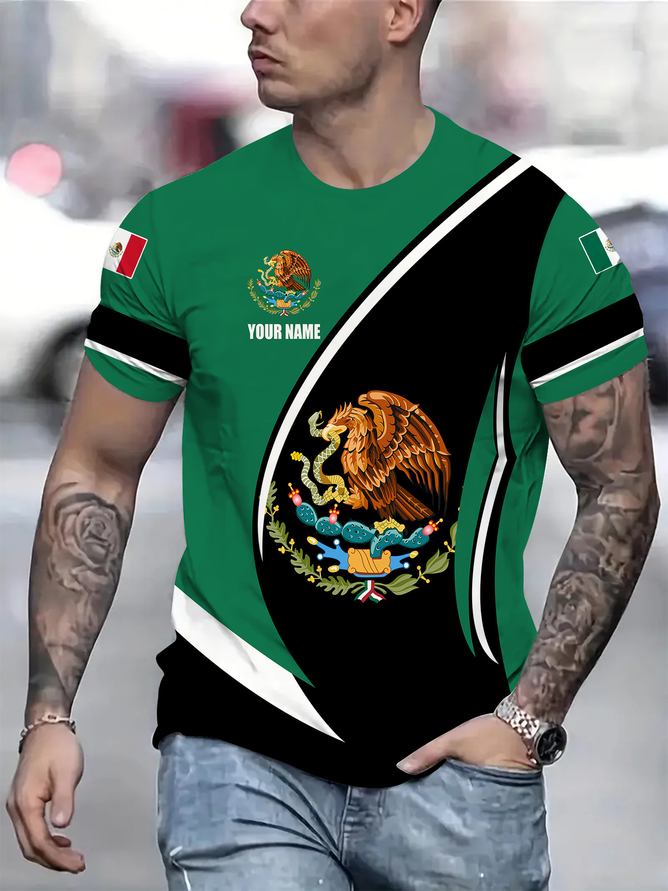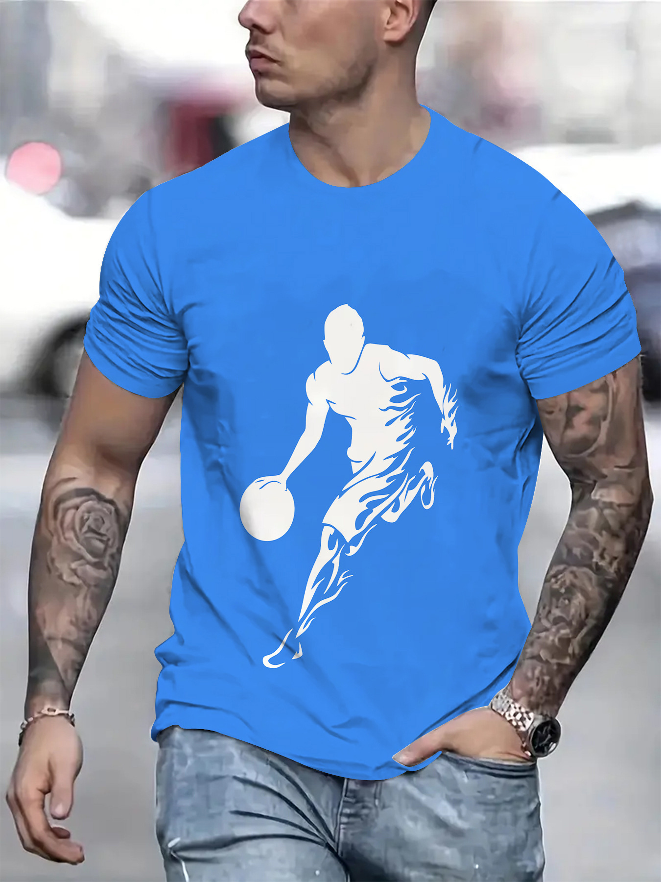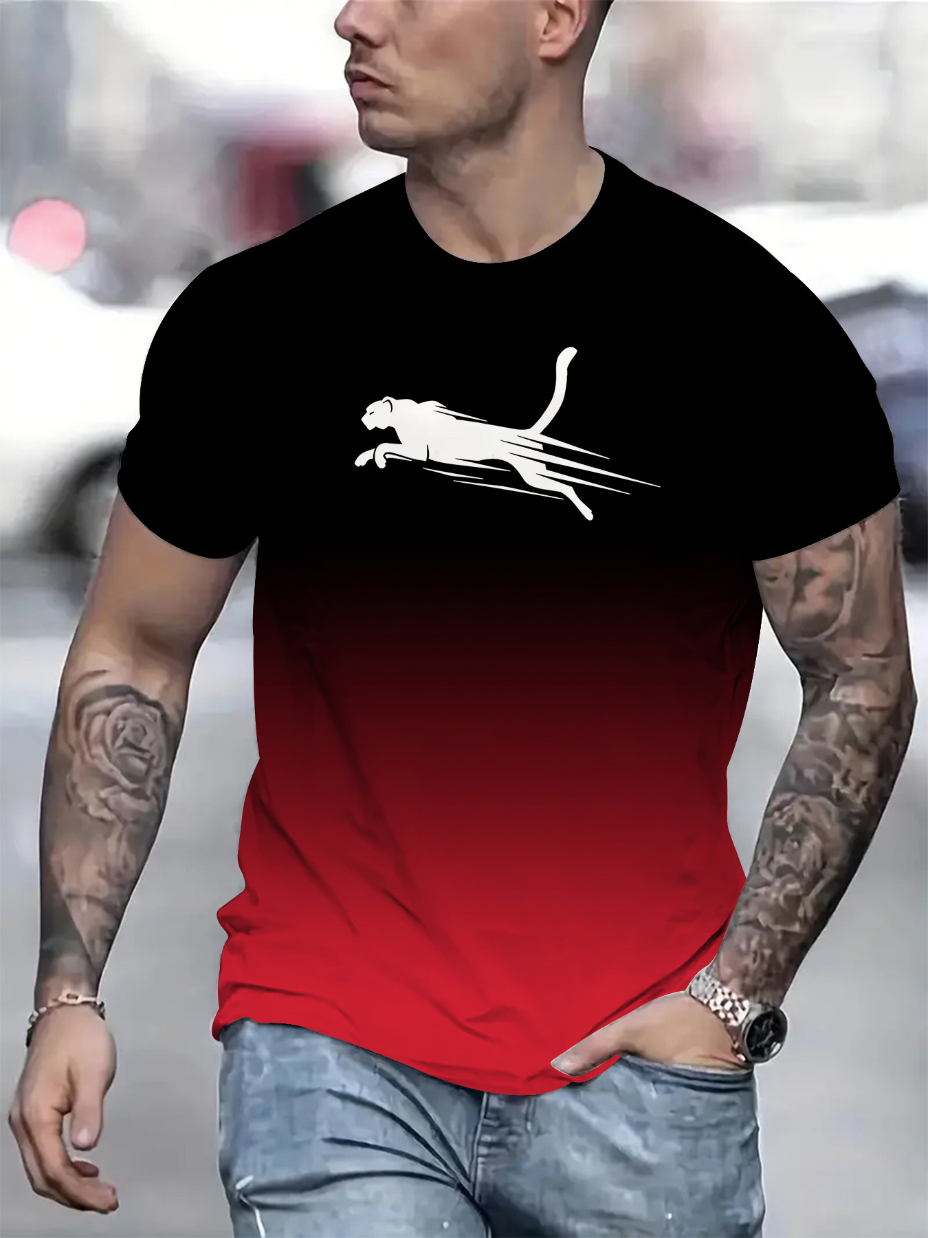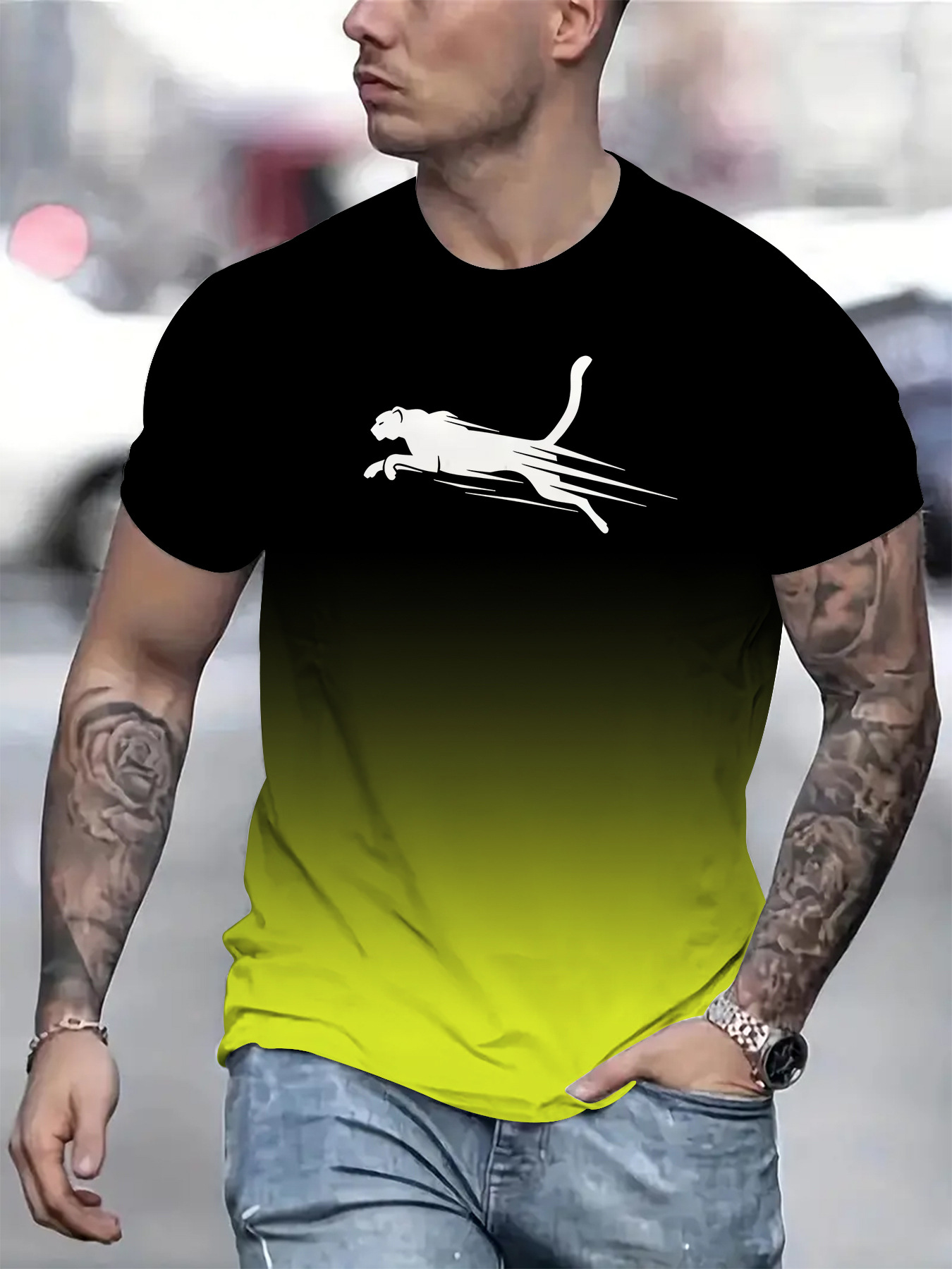 2024 새로운 국경 무역 3D 디지털 인쇄 메쉬 티셔츠 유럽 크기 남성 스포츠 통기성 짧은 소매스토어 가기