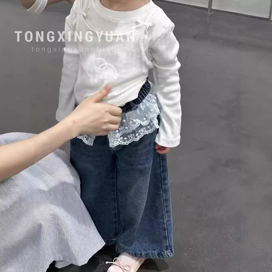 통싱 위안 달콤한 귀여운 가을 새로운 소녀 한국 스타일 서양식 슬링베이스 세트 캐주얼 레이스 청바지