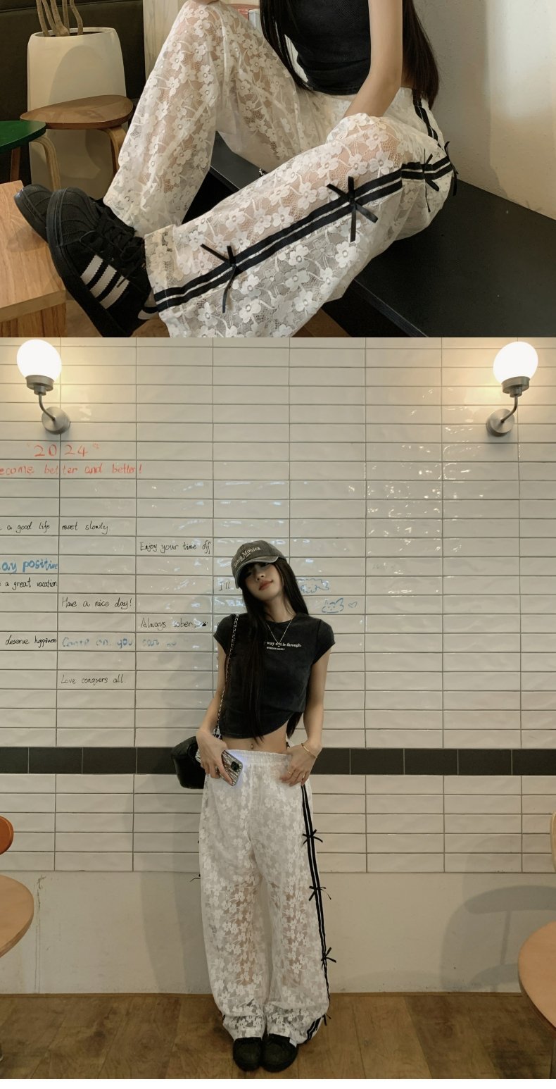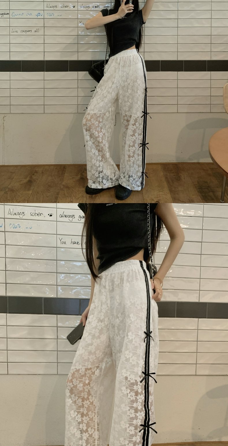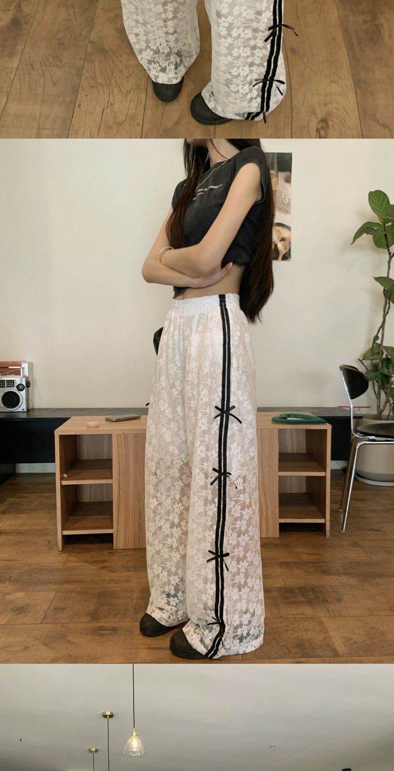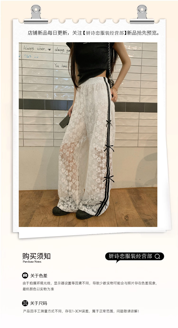 활 레이스 중공 캐주얼 바지 여성의 초가을 디자인 세련된 높은 허리 슬리밍 높은 허리 슬리밍 스트레이트 바지스토어 가기