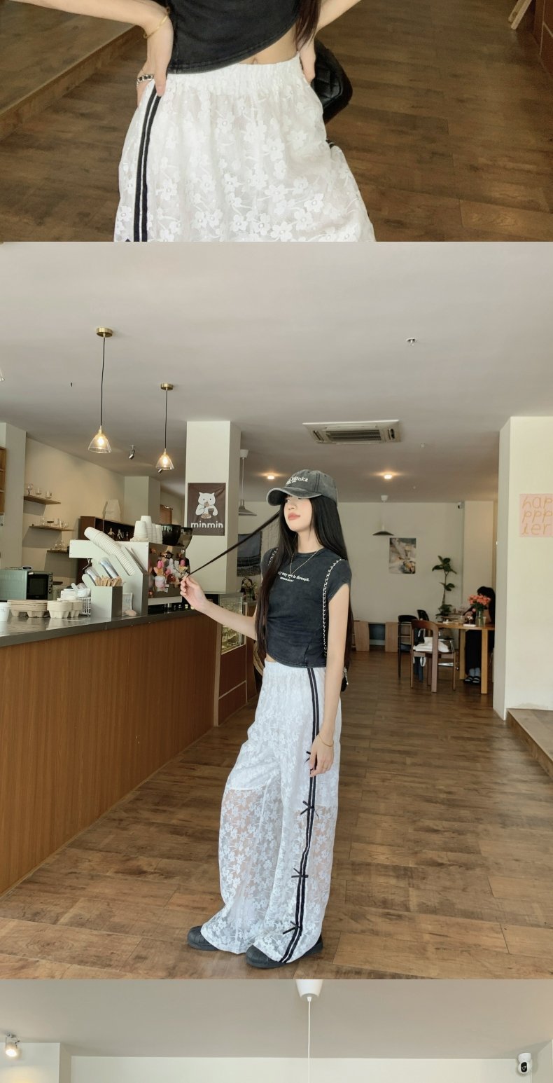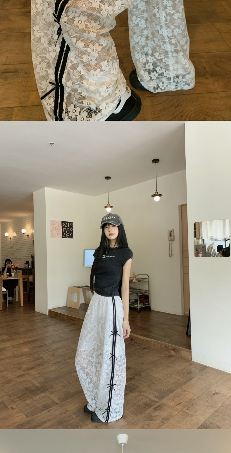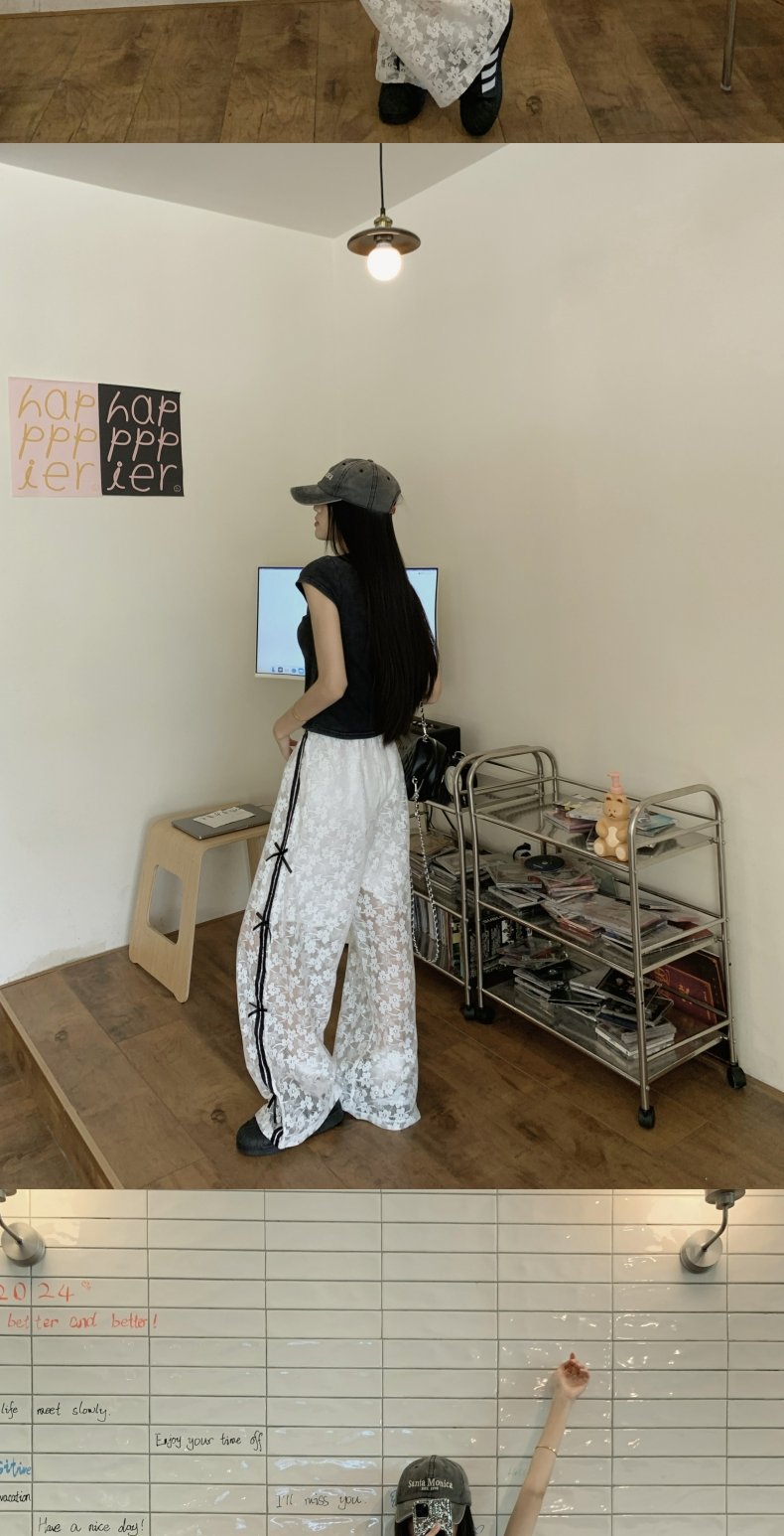 활 레이스 중공 캐주얼 바지 여성의 초가을 디자인 세련된 높은 허리 슬리밍 높은 허리 슬리밍 스트레이트 바지스토어 가기