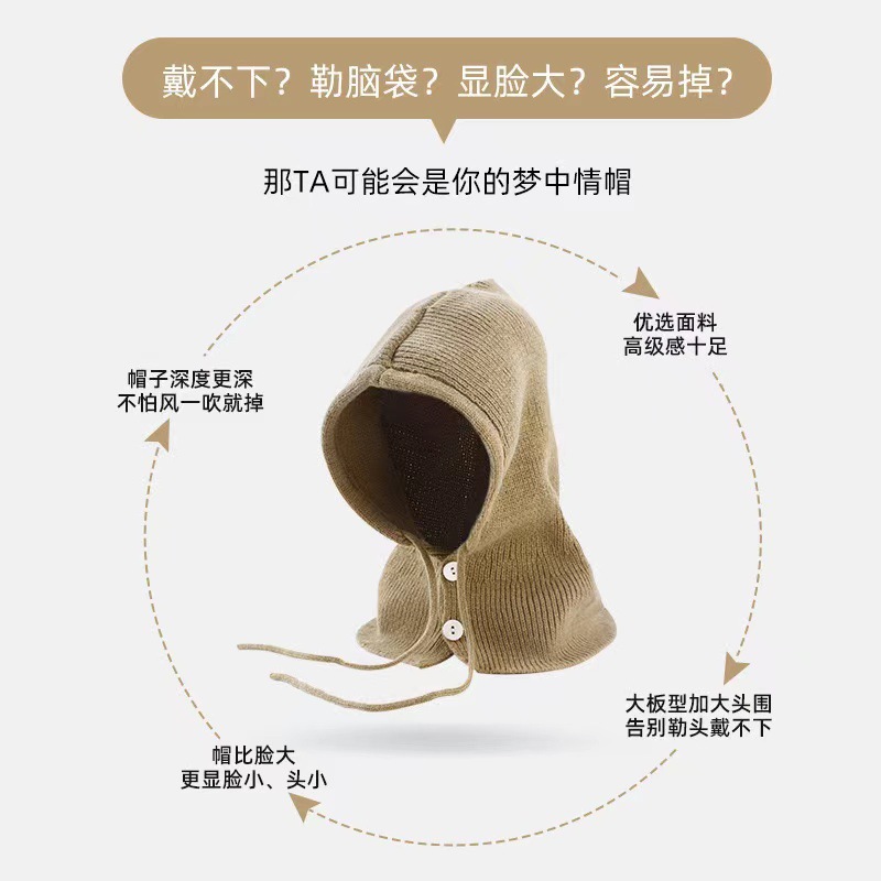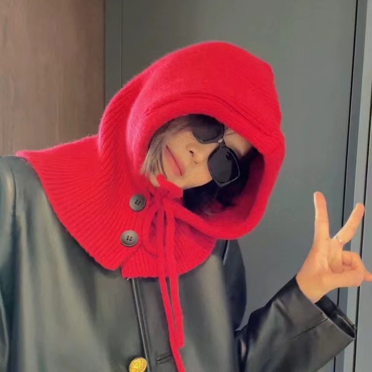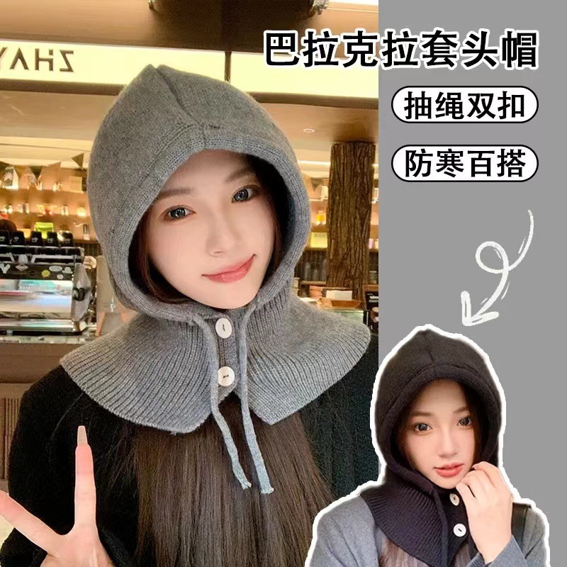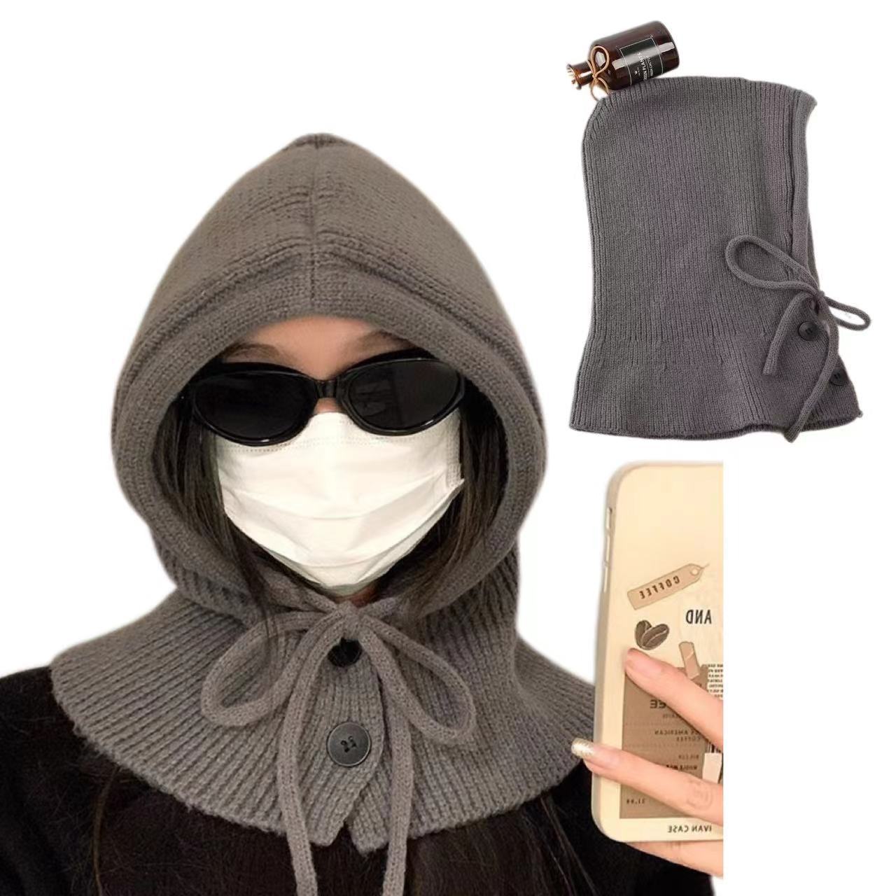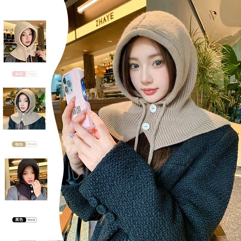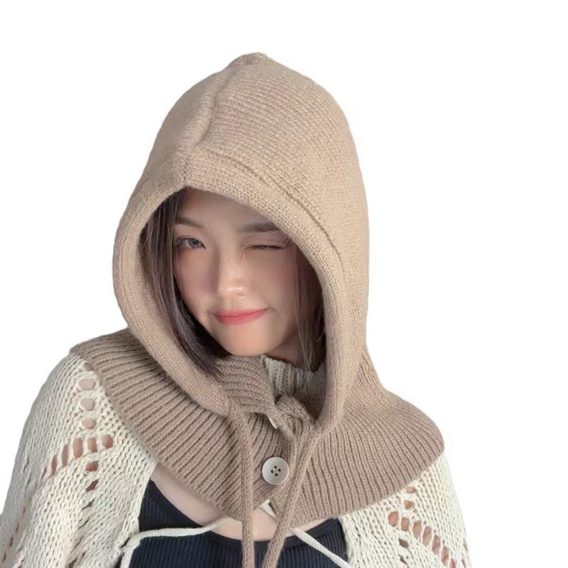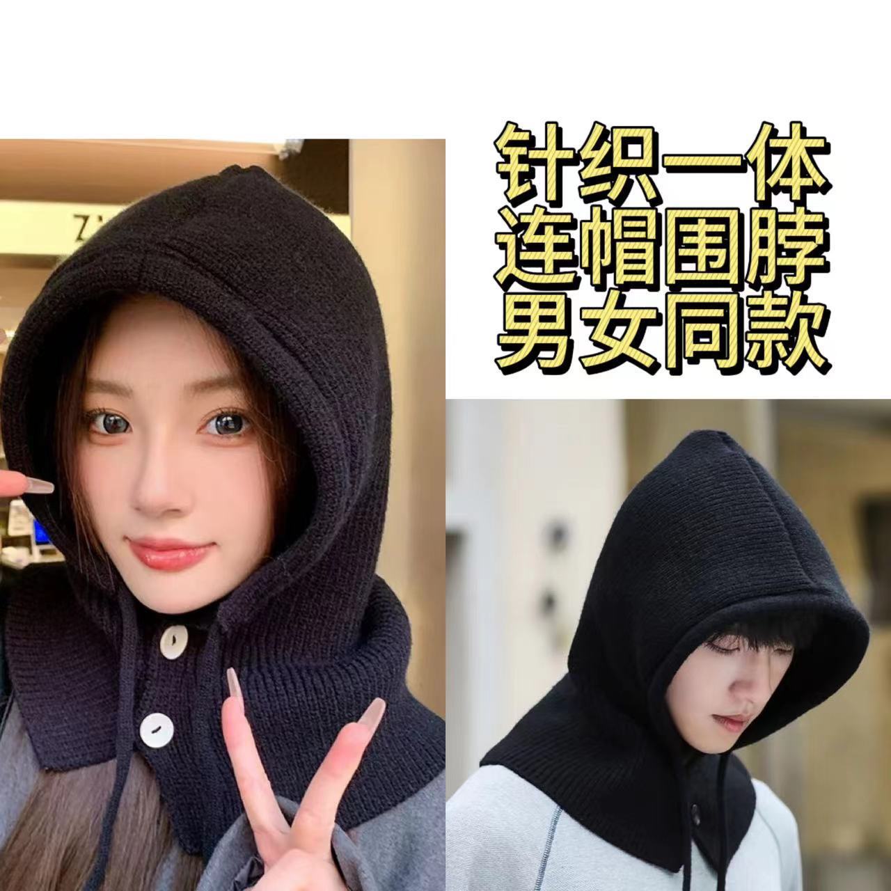 남성과 여성의 가을 겨울 스카프 통합 목도리 후드 두꺼운 따뜻한 니트 풀오버 모자 학생 귀 보호 울 모자