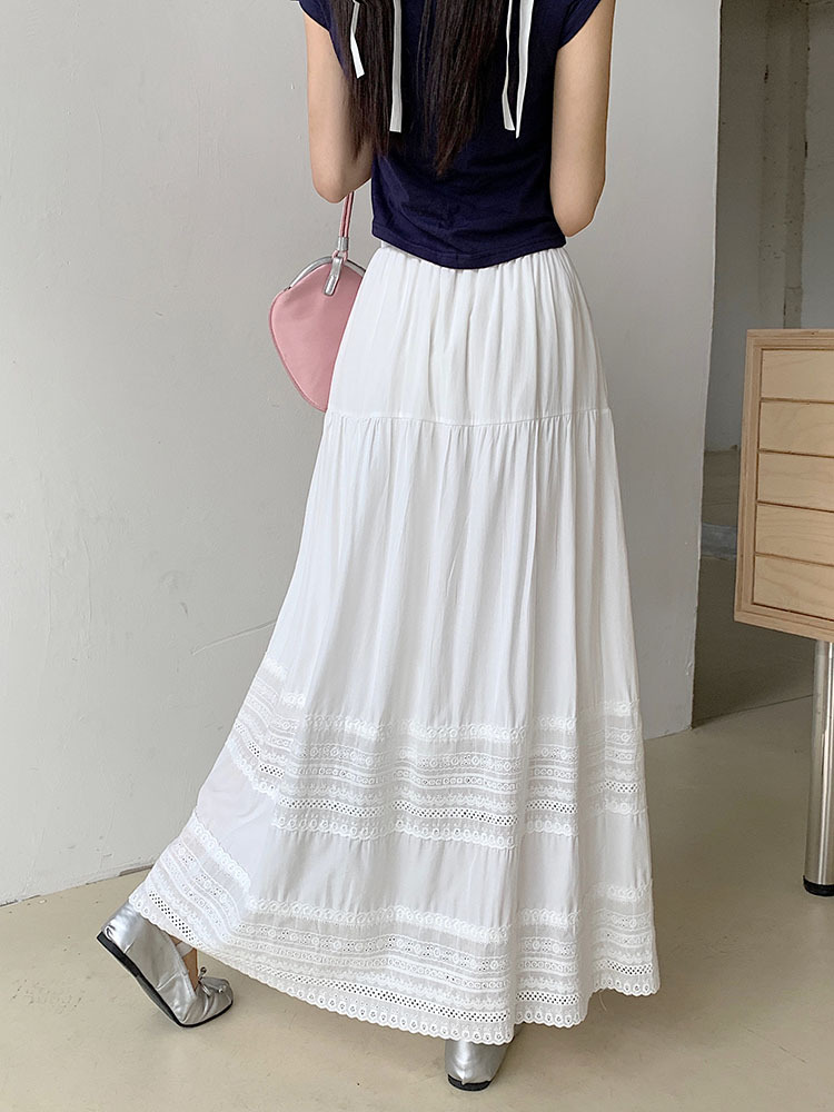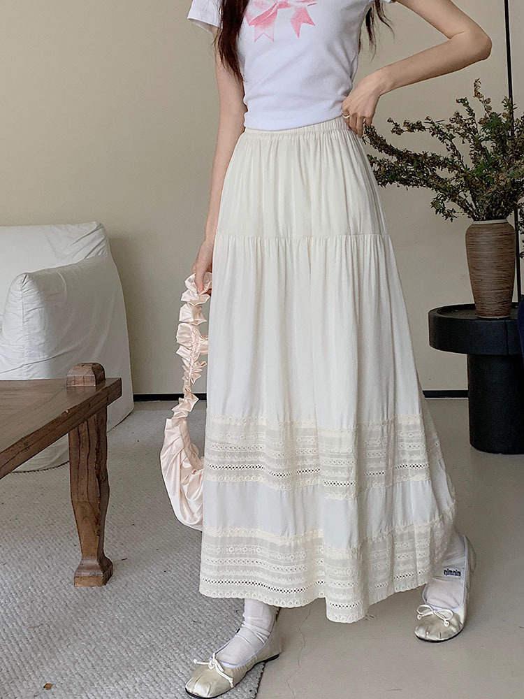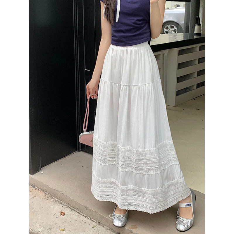 리얼 샷 2024 가을과 겨울 새로운 한국 자수 레이스 스티칭 긴 스커트 디자인 높은 허리 A 라인 스커트 조수