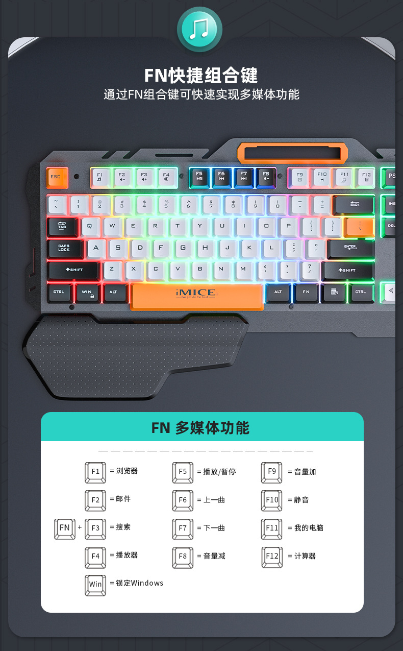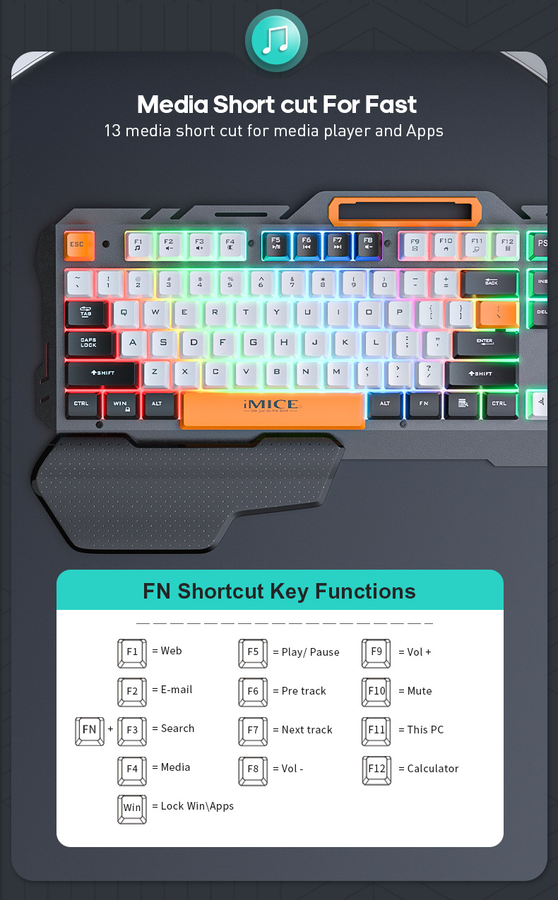 IMICE 브랜드 GK-700 제조업체 직접 공급 USB 유선 금속 백라이트 휴대용 게임 키보드스토어 가기