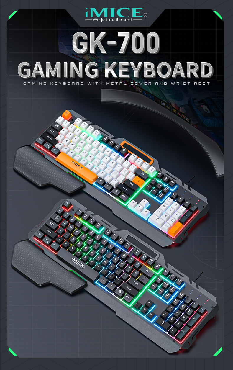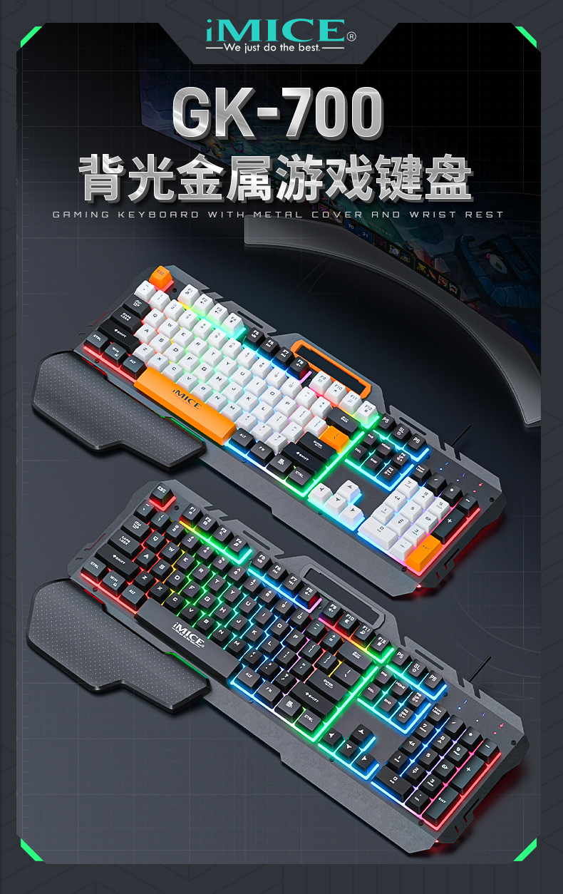 IMICE 브랜드 GK-700 제조업체 직접 공급 USB 유선 금속 백라이트 휴대용 게임 키보드