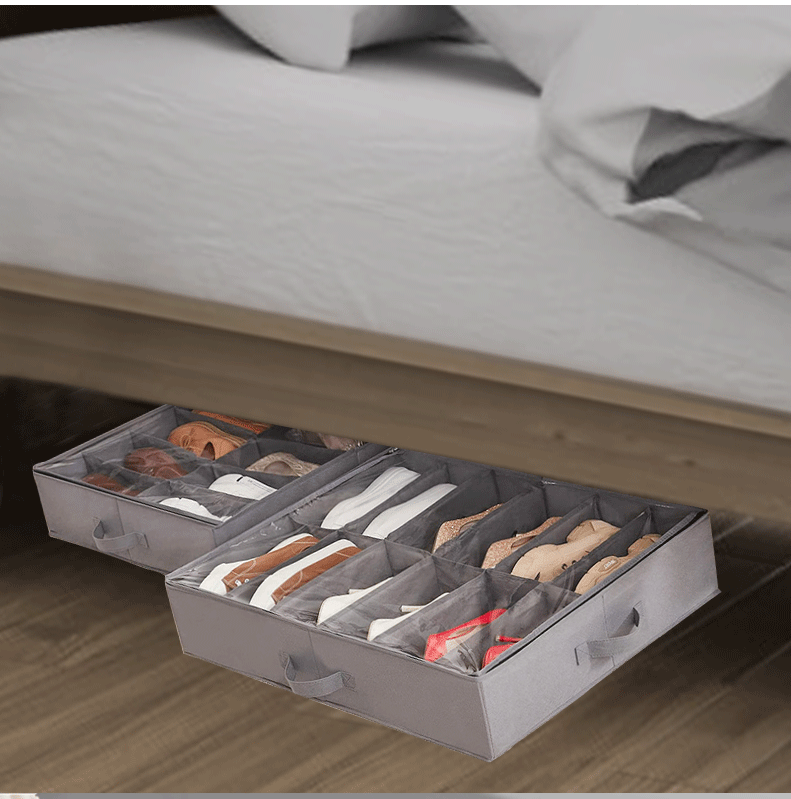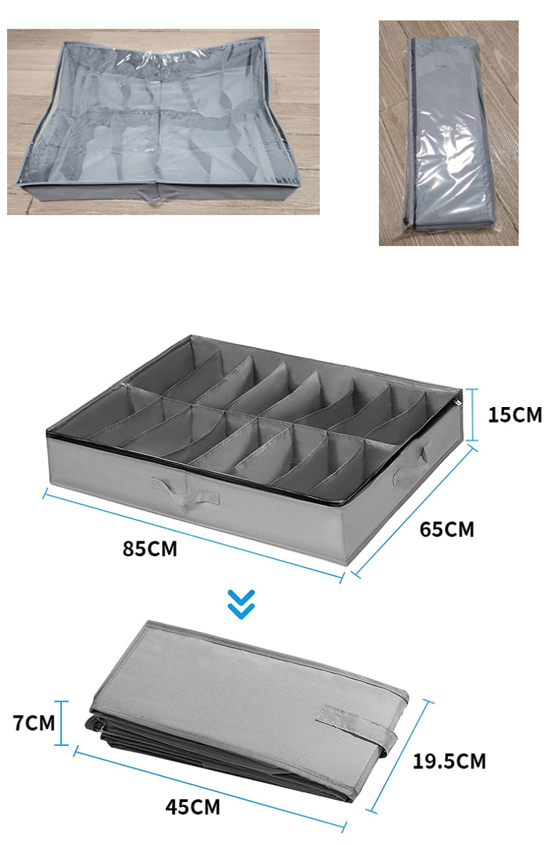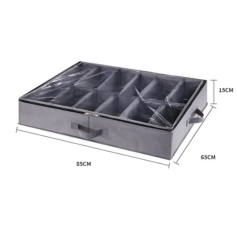 12 구획 침대 바닥 보관 상자 신발 방진 보관 상자 투명 접이식 보관 상자 직물 구획 보관 신발 상자