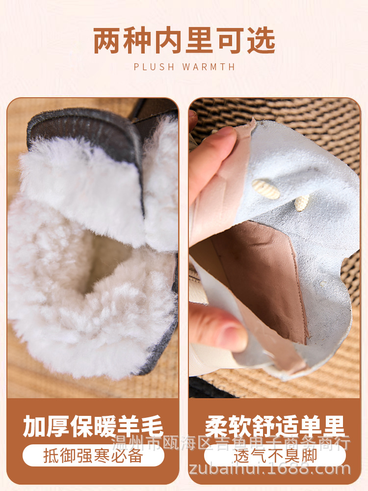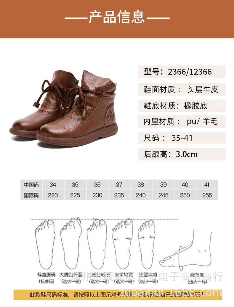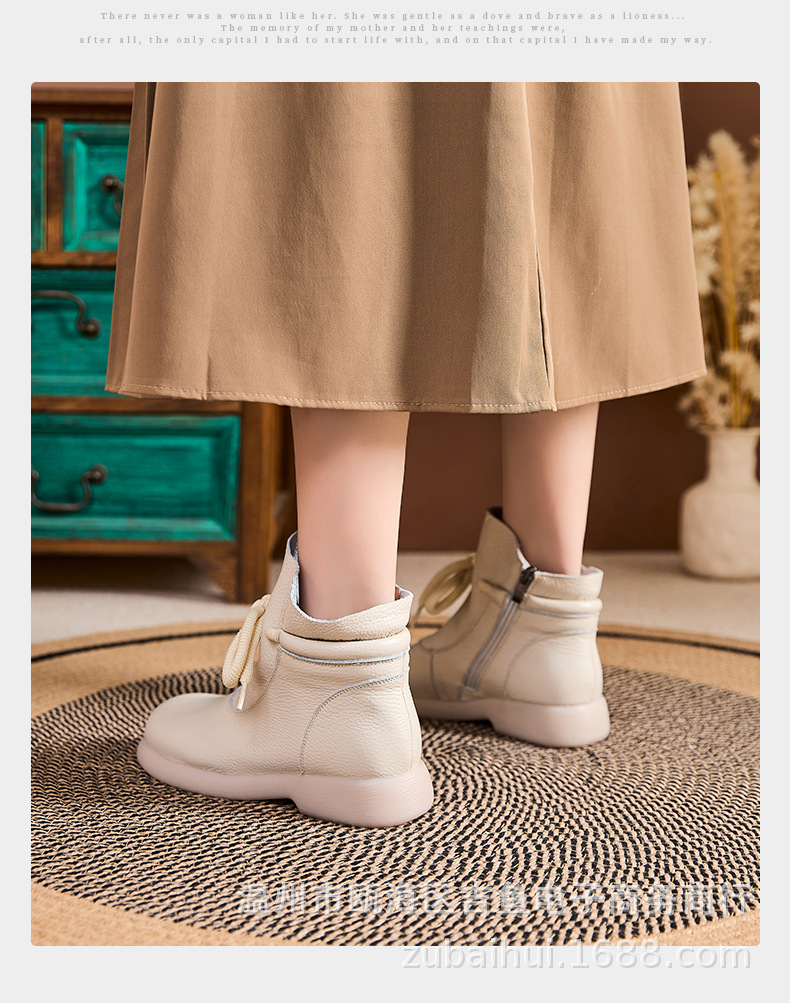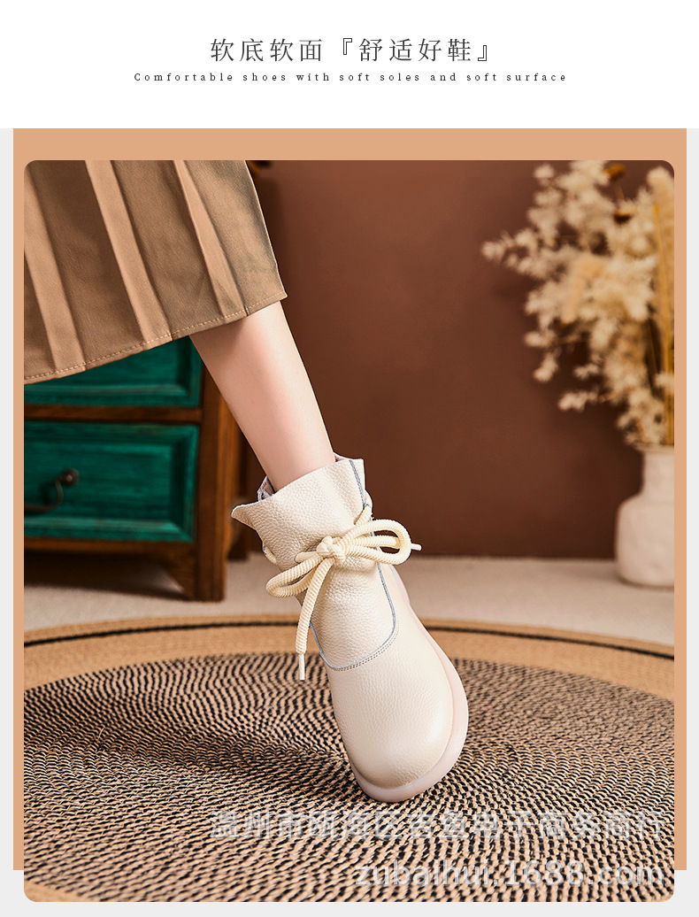 봄과 가을 정품 가죽 빈티지 부츠 양모 따뜻한 짧은 배럴 마틴 플랫 비 슬립 중년 여성 부츠스토어 가기
