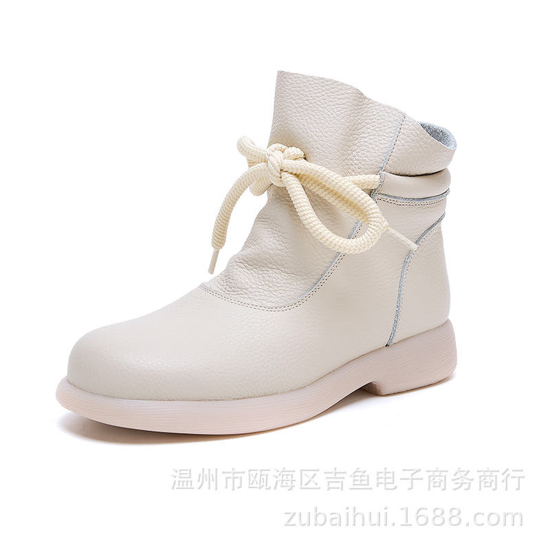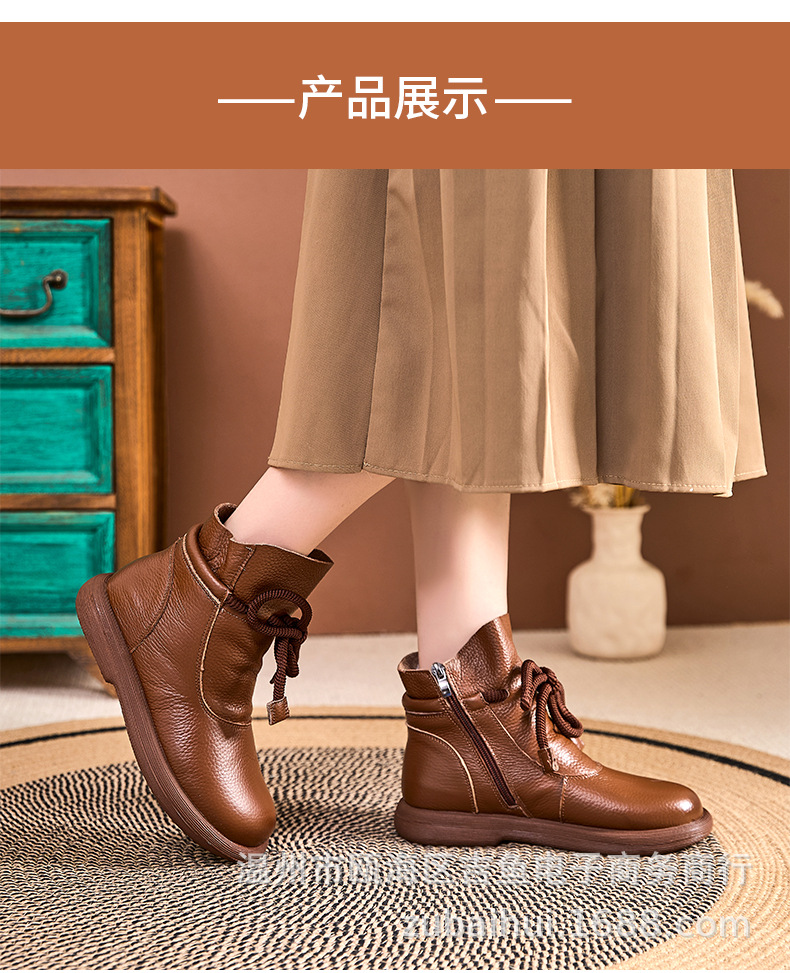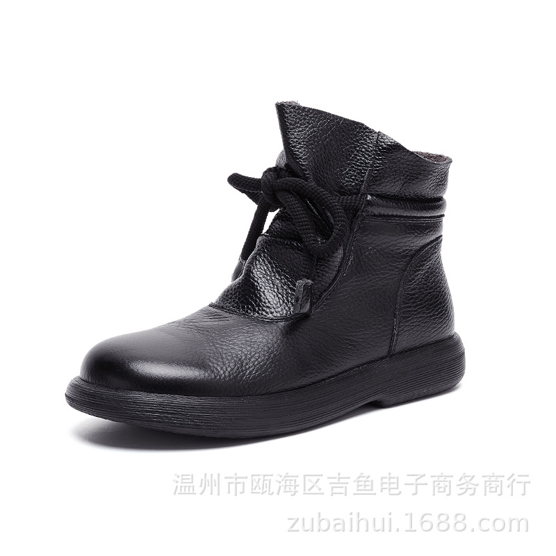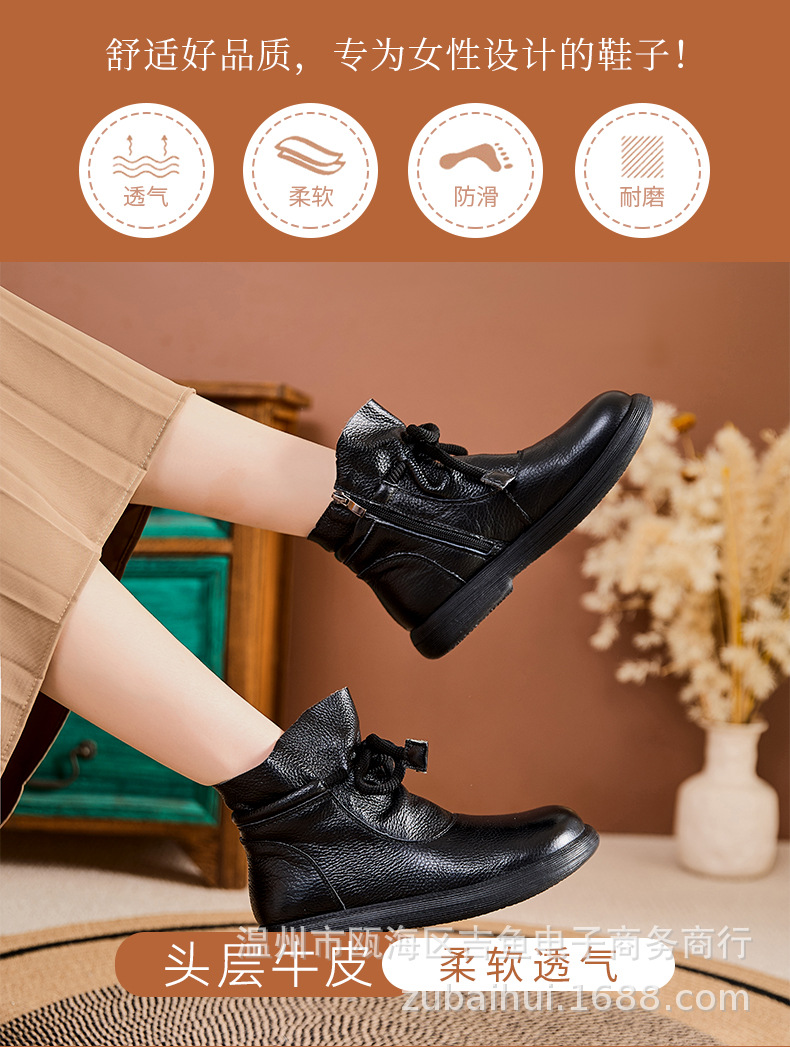 봄과 가을 정품 가죽 빈티지 부츠 양모 따뜻한 짧은 배럴 마틴 플랫 비 슬립 중년 여성 부츠