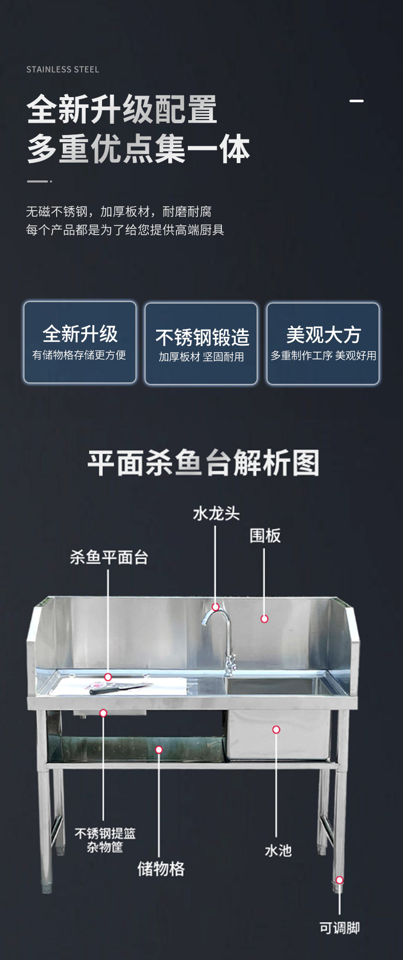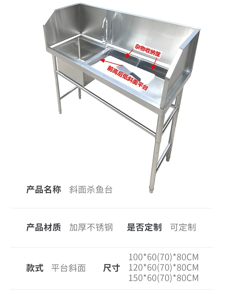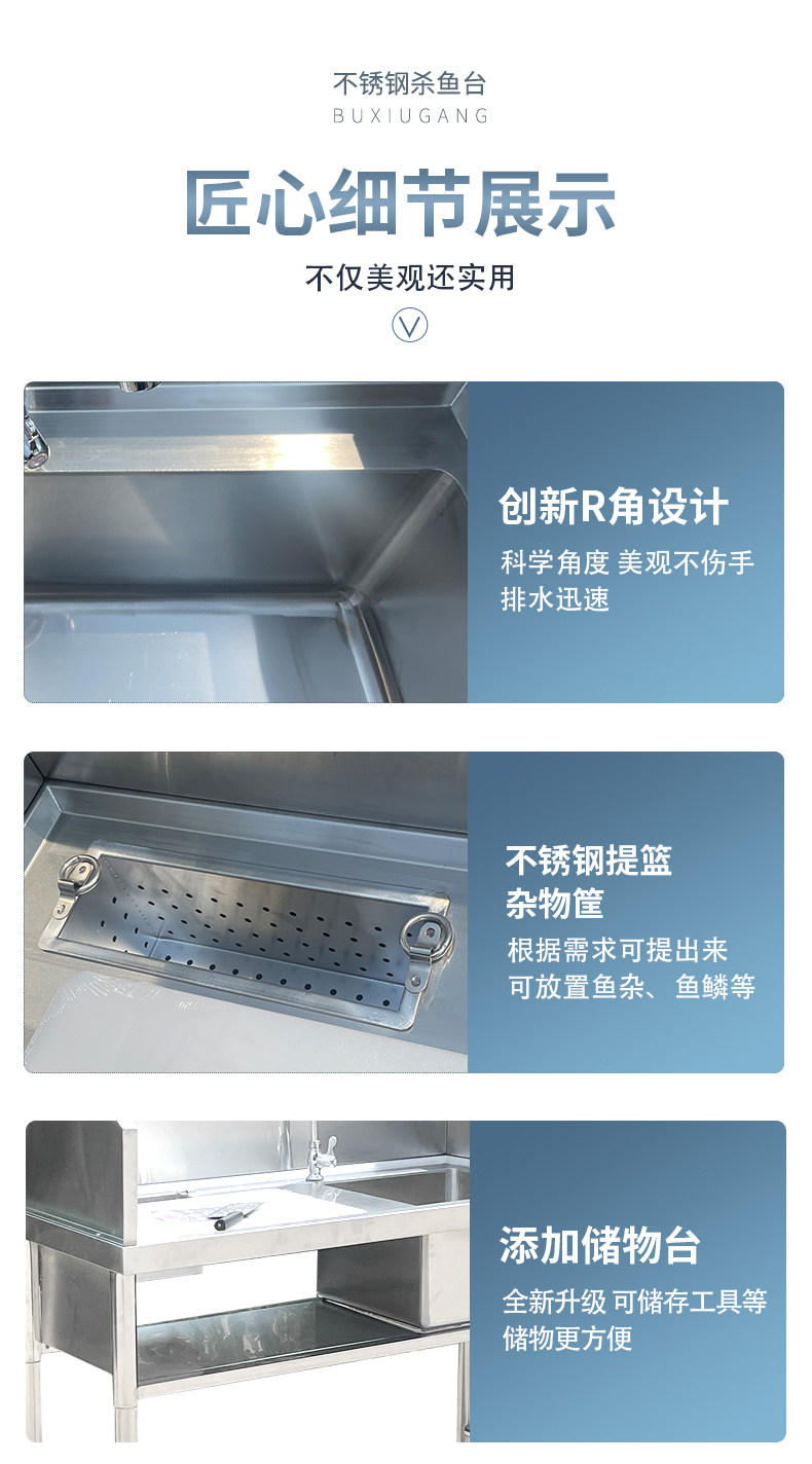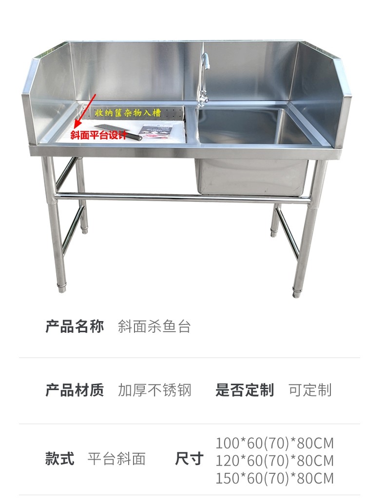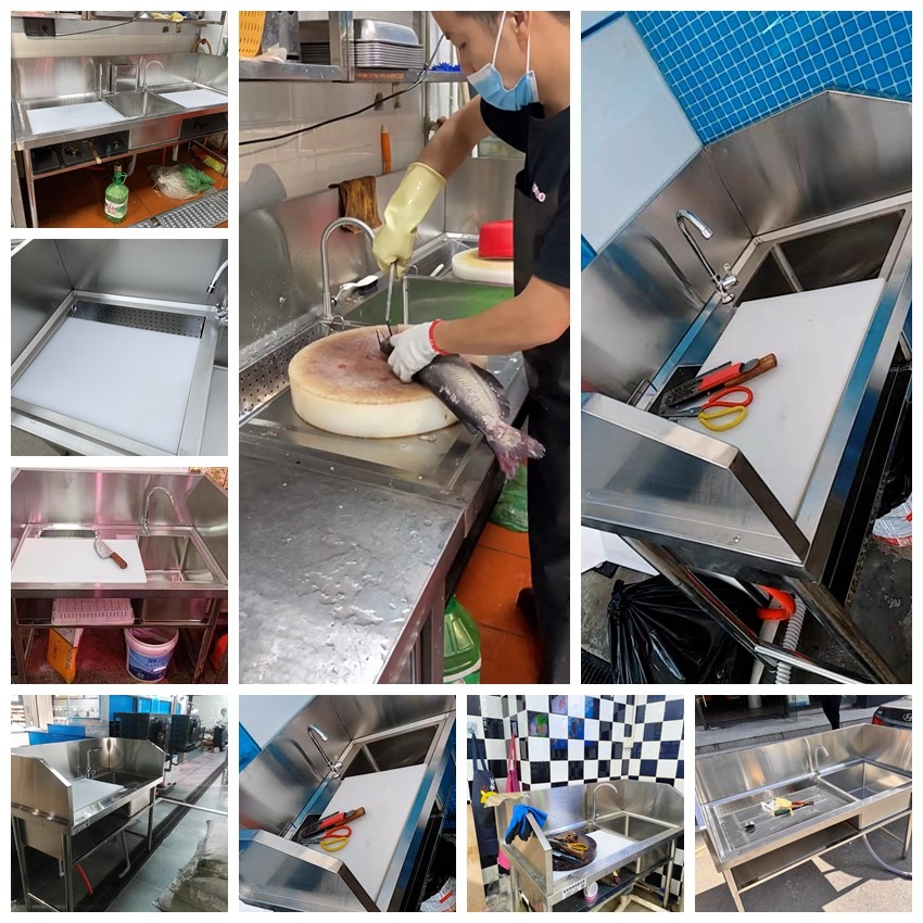 상업용 스테인리스 슈퍼마켓 물고기 죽이는 테이블 과일 신선한 잘라 닭고기와 오리 수산물 도축 물고기 계획 풀 운영 테이블
