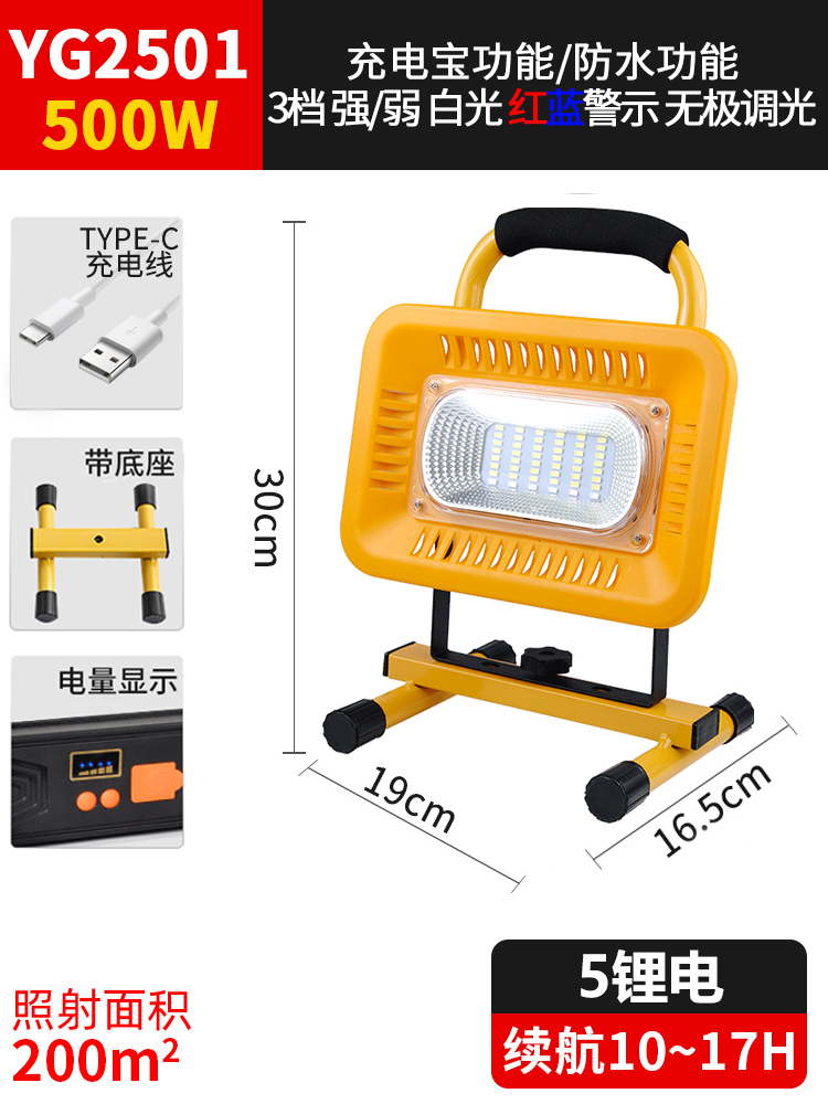 • 500W 5개의 리튬 배터리 수명 10-17 투광 조명 200평방미터
