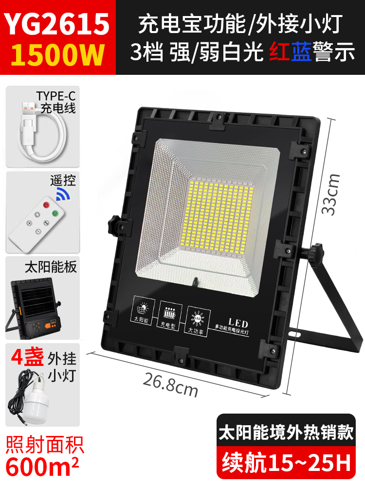 • 1000W 태양광 엔지니어링 모델(용량 업그레이드) + 리모콘/배터리 수명 18-30시간 투광 조명 500제곱미터