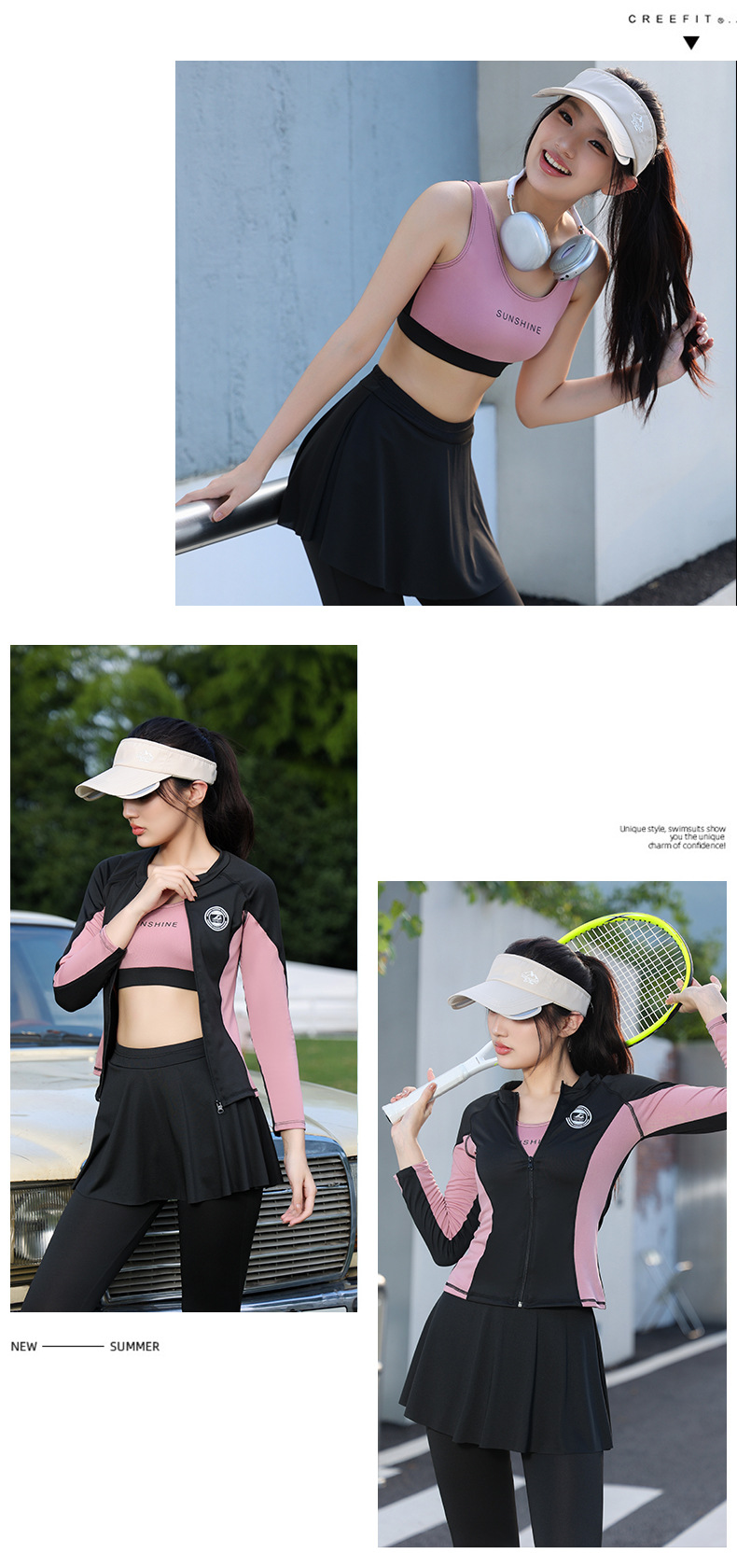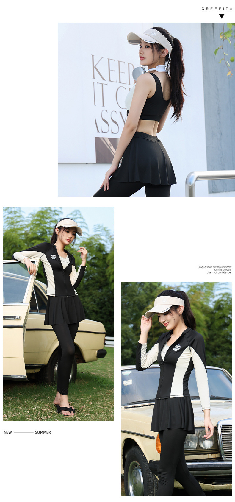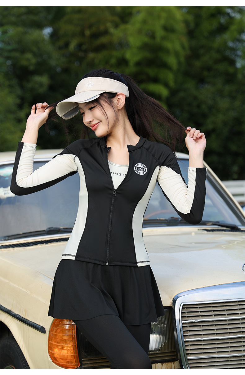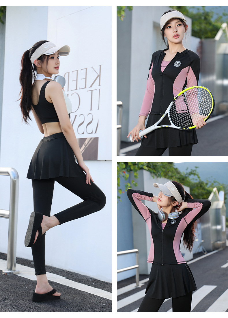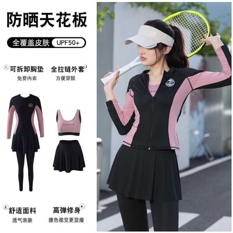 수영복 여성 4 피스 세트 보수적 분할 긴팔 바지 태양 방지 2024 새로운 수영복 플러스 사이즈 서핑 다이빙 세트스토어 가기