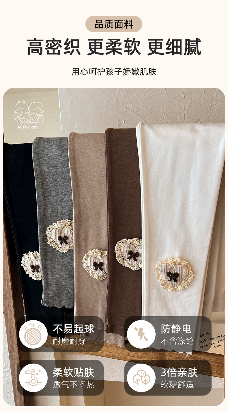 24 년 가을과 겨울 플러스 얇은 벨벳 간단한 레깅스 소녀 레이스 꽃 샌딩 따뜻한 바지 외부 바지 어린이