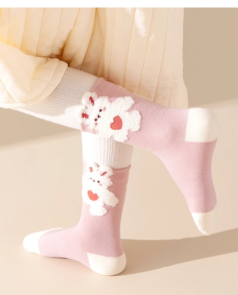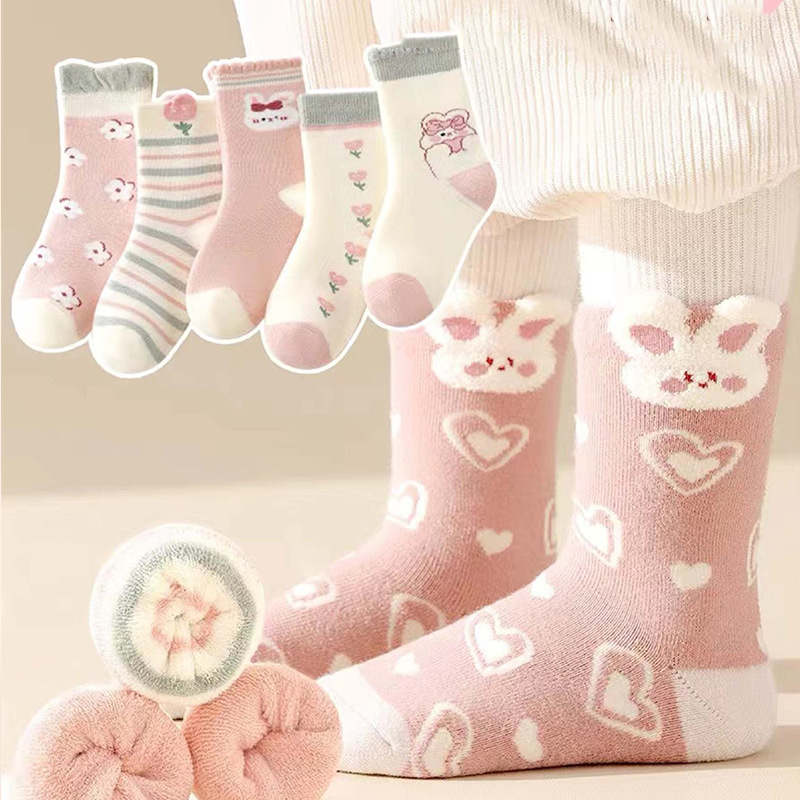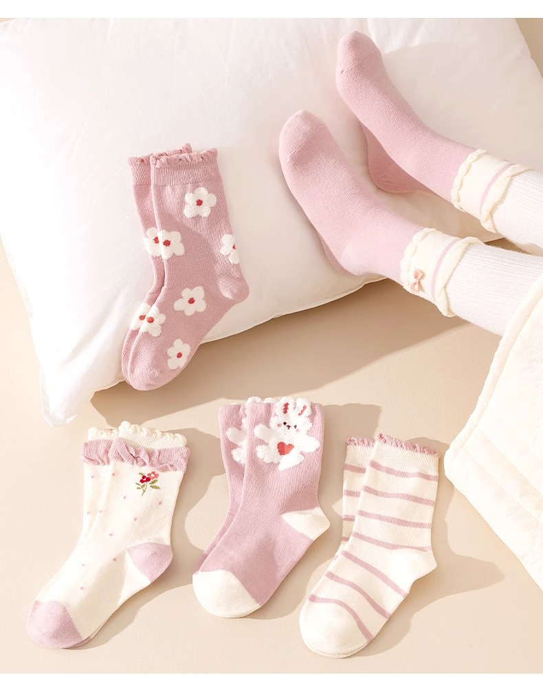 만화 공주 양말 어린이 양말 가을과 겨울 핑크 다재다능한 소녀 새로운 레이스 토끼 봄과 가을 아기 서양 스타일
