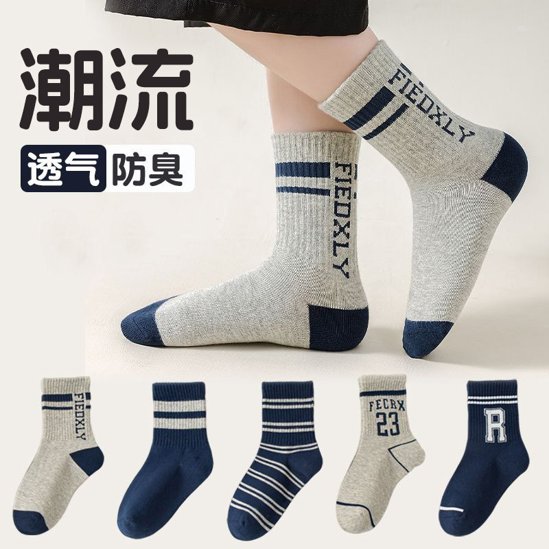 • 소년용 컬러 매칭 음양 양말 10켤레