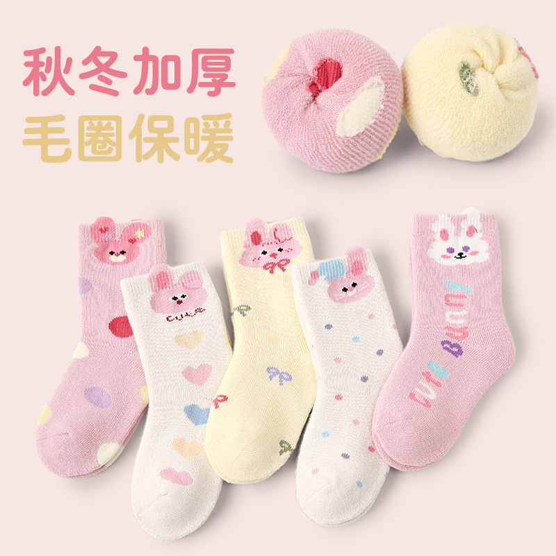 만화 공주 양말 어린이 양말 가을과 겨울 핑크 다재다능한 소녀 새로운 레이스 토끼 봄과 가을 아기 서양 스타일스토어 가기
