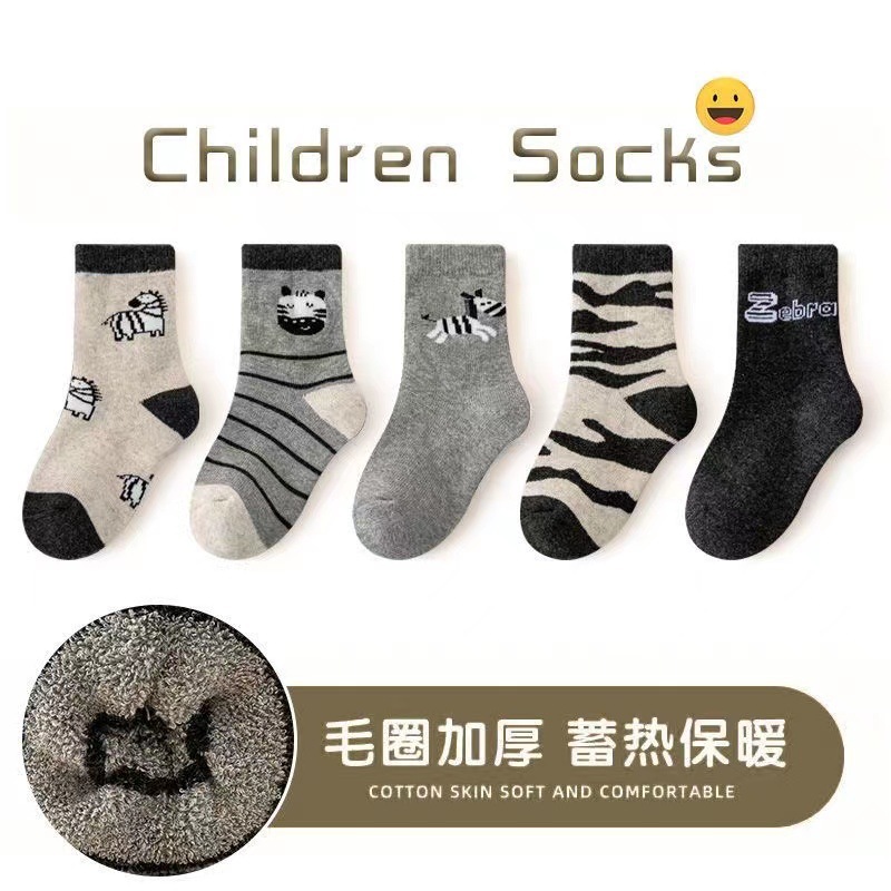 • 5켤레 흑백 얼룩말 무늬 테리 양말