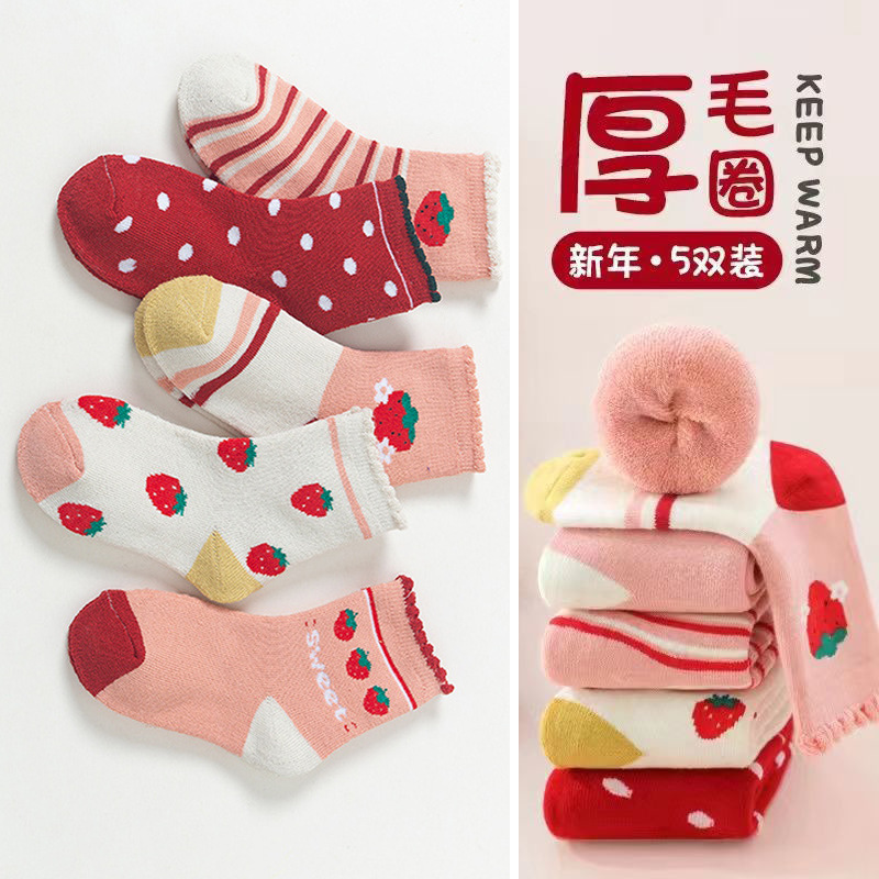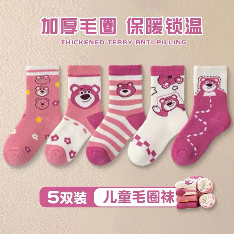 • 5켤레 공주 핑크 토끼털 테리 양말