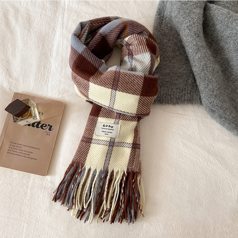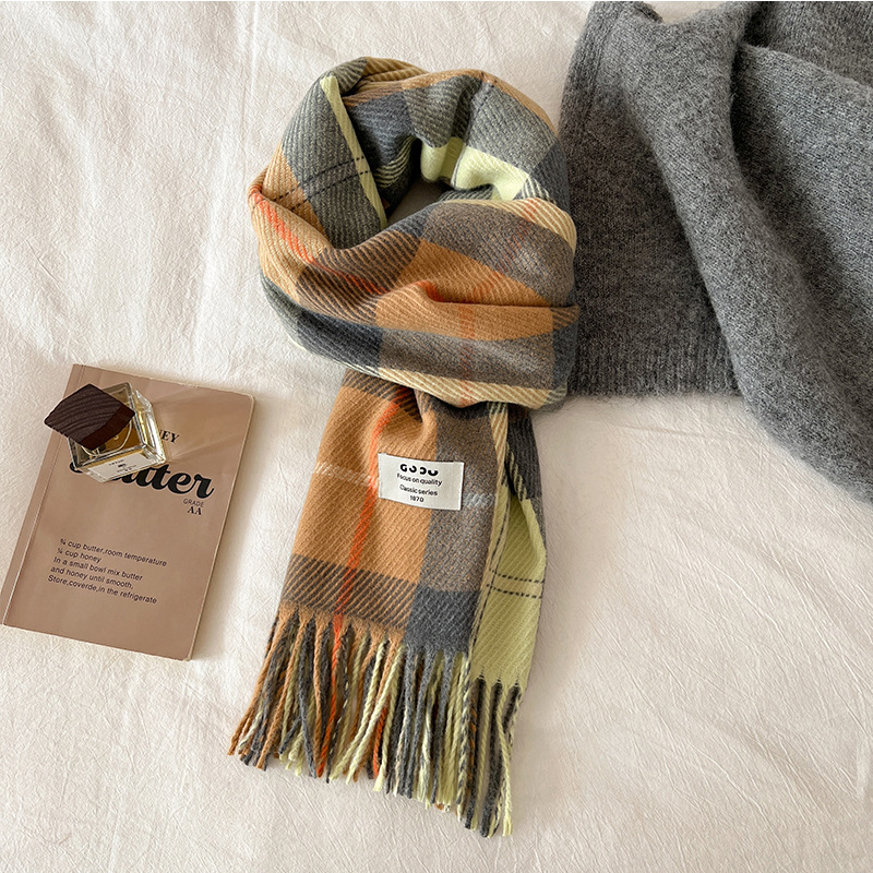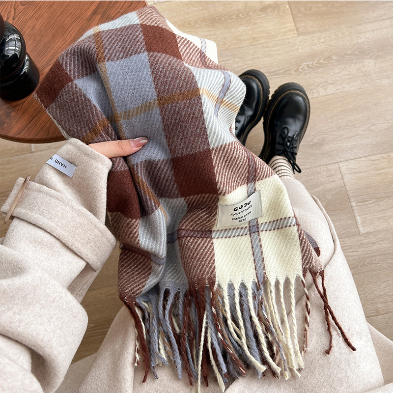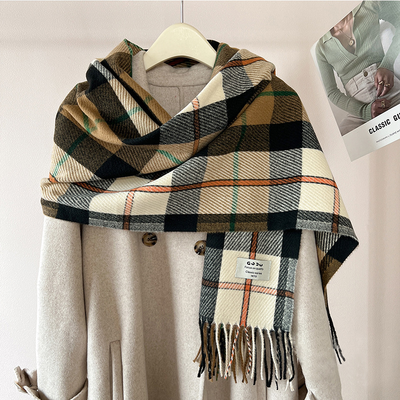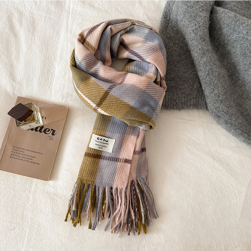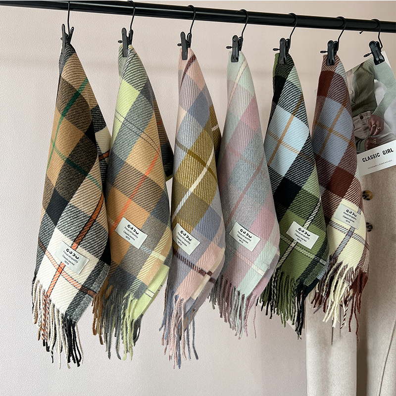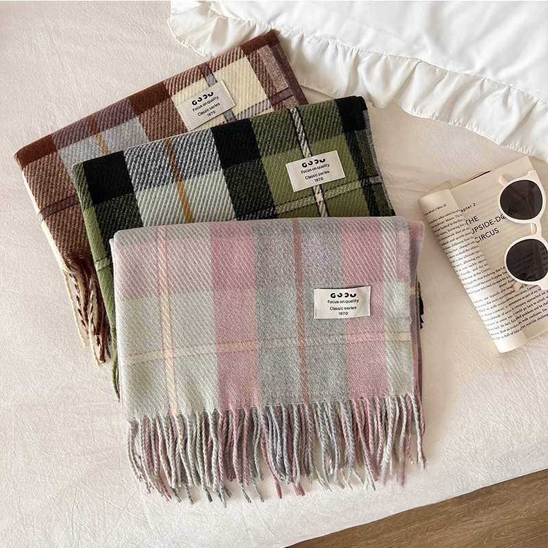고급 격자 무늬 스카프 여성 겨울 한국 패션 올 매치 크리스마스 선물 학생 커플 이중 사용 스카프 목도리