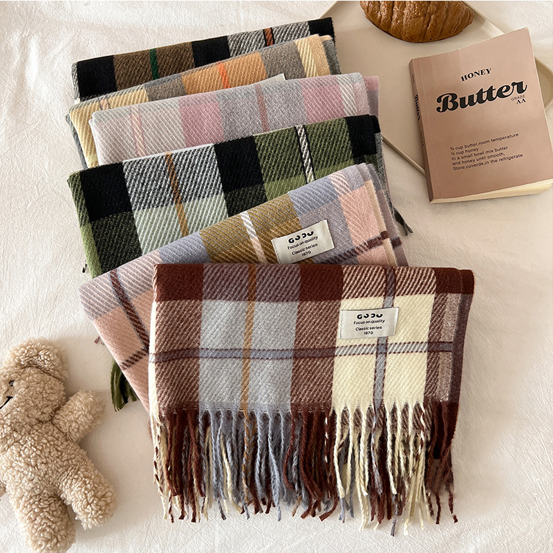 고급 격자 무늬 스카프 여성 겨울 한국 패션 올 매치 크리스마스 선물 학생 커플 이중 사용 스카프 목도리스토어 가기