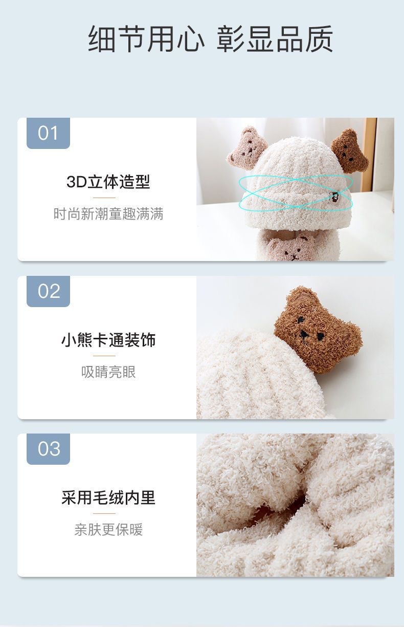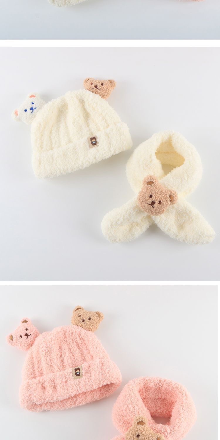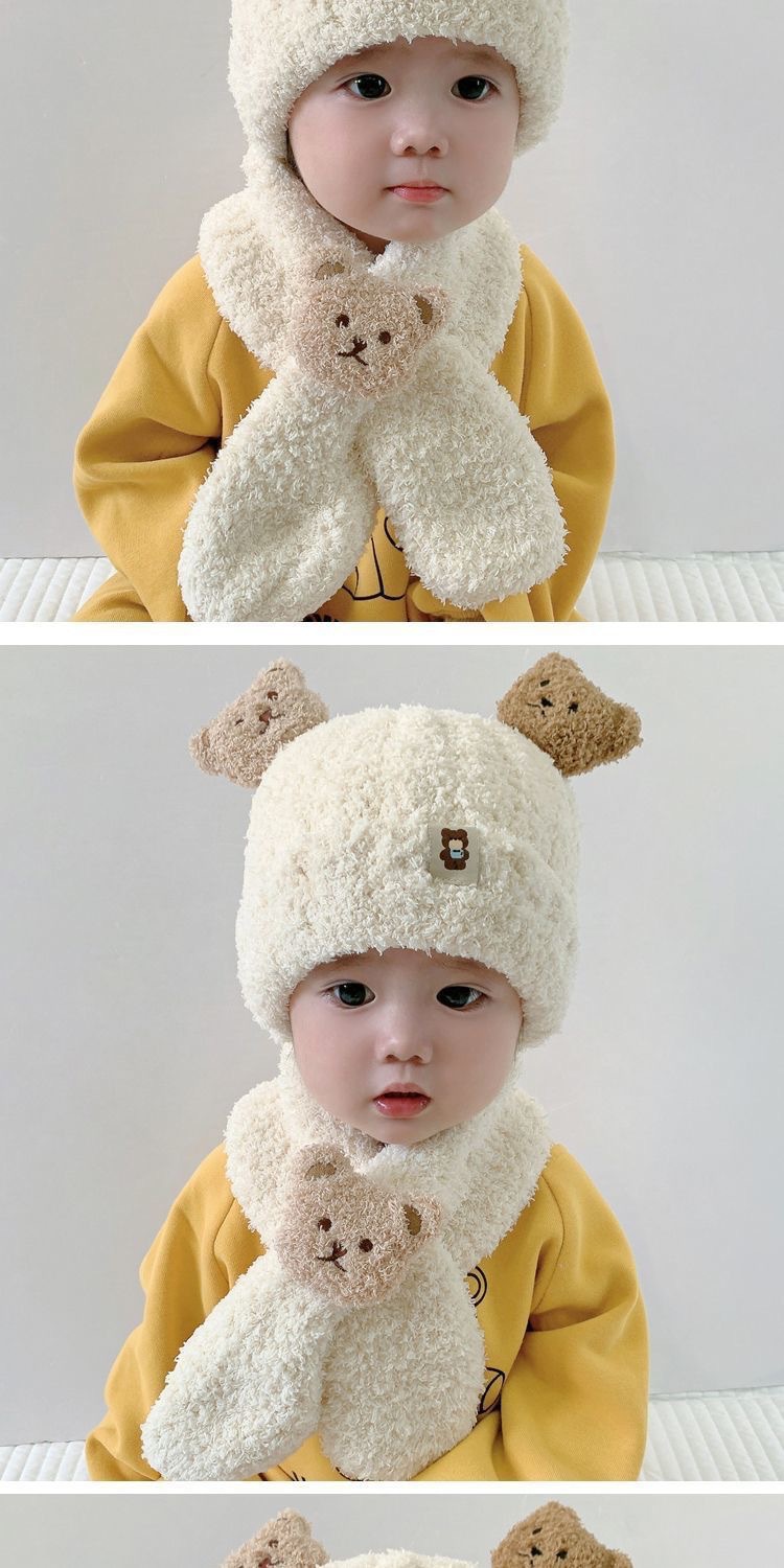 秋冬季新款婴儿小熊帽子围巾两件套加绒加厚保暖可爱男女宝宝同款