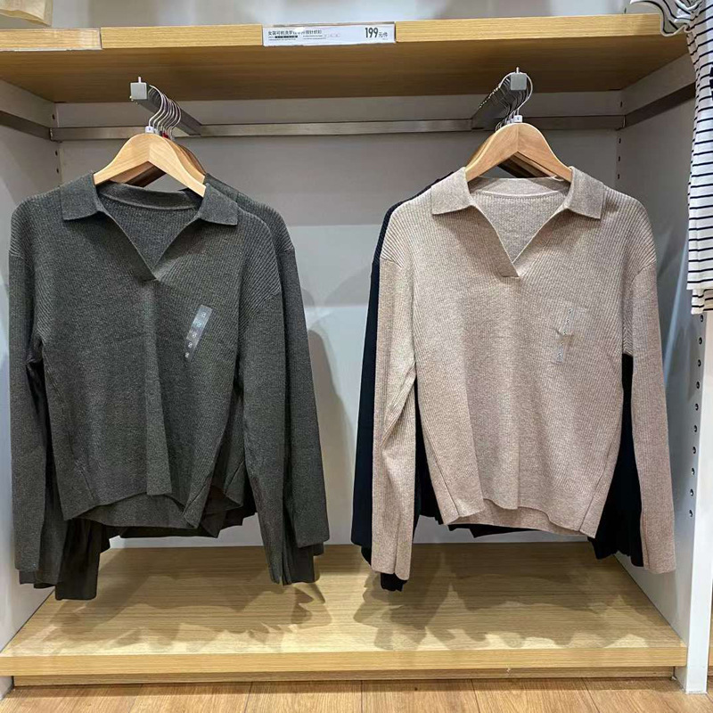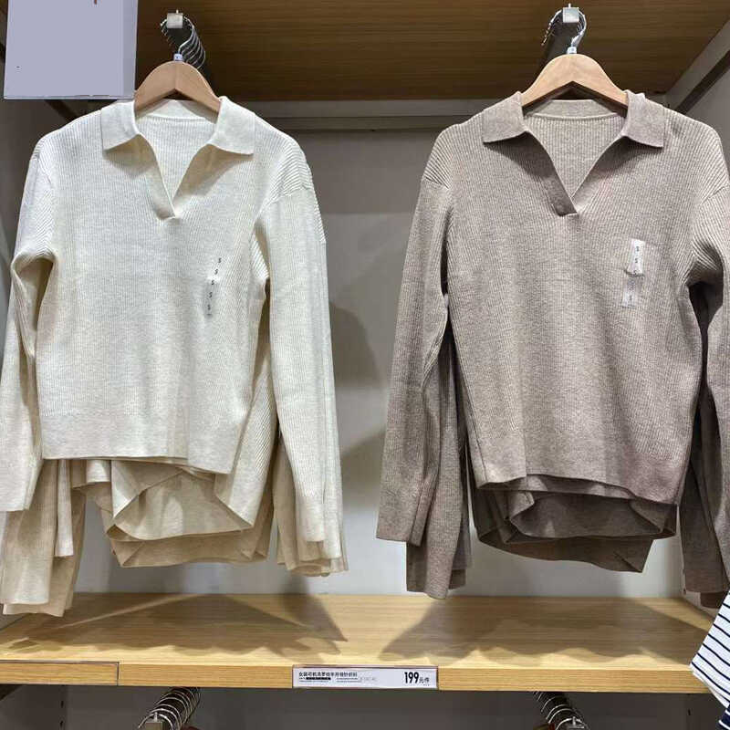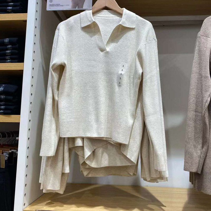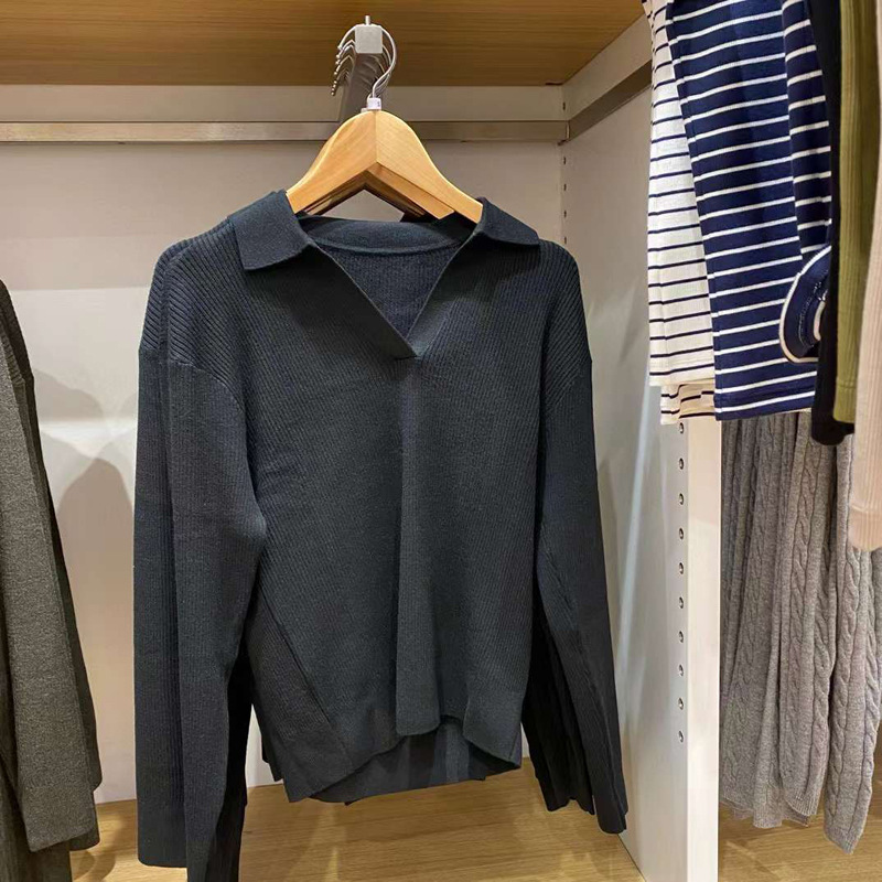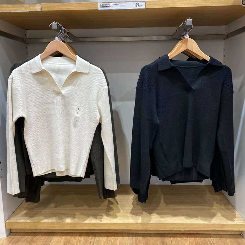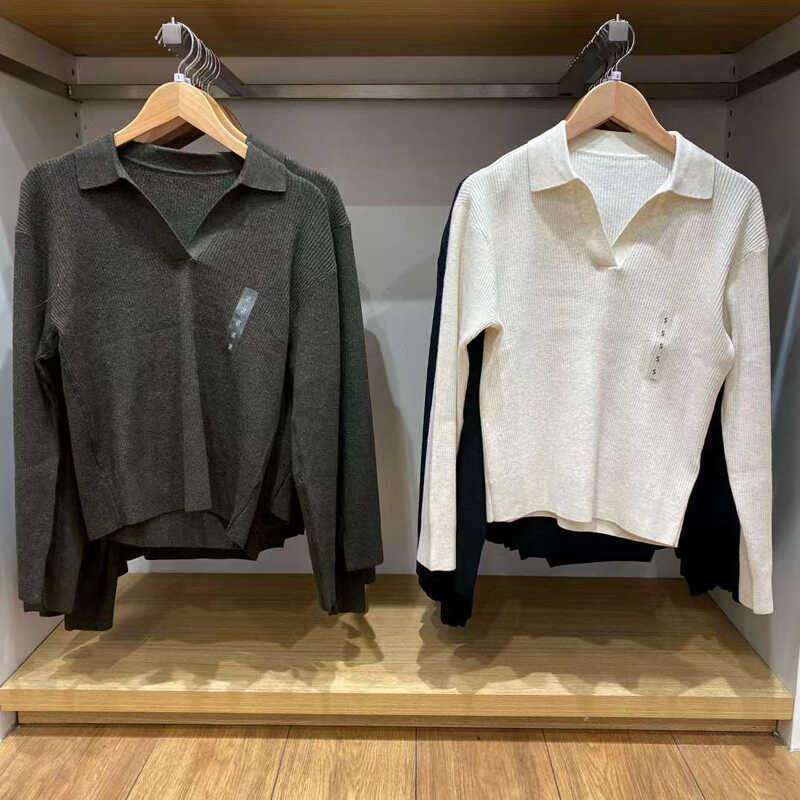 가을과 겨울 긴 소매 POLO 목 스웨터 카디건 코트 M471220 일본 새로운 여성의 2024 rib 니트스토어 가기