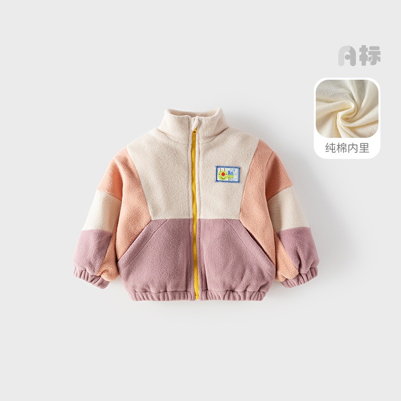 어린이 코트 소년 양털 코트 가을 원피스 여아 긴팔 컬러 블록 탑 기모 중소형 아동용 코트 따뜻한 보관