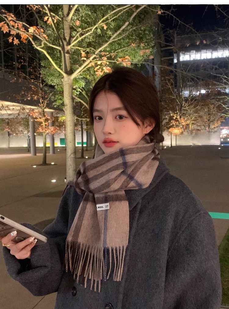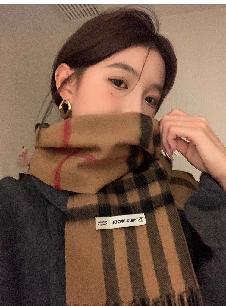 수출 한국 ~ 순수 양모 체크 스카프 여성의 겨울 복고풍 영국 스타일 따뜻한 목 보호 올 매치 승마 스카프스토어 가기