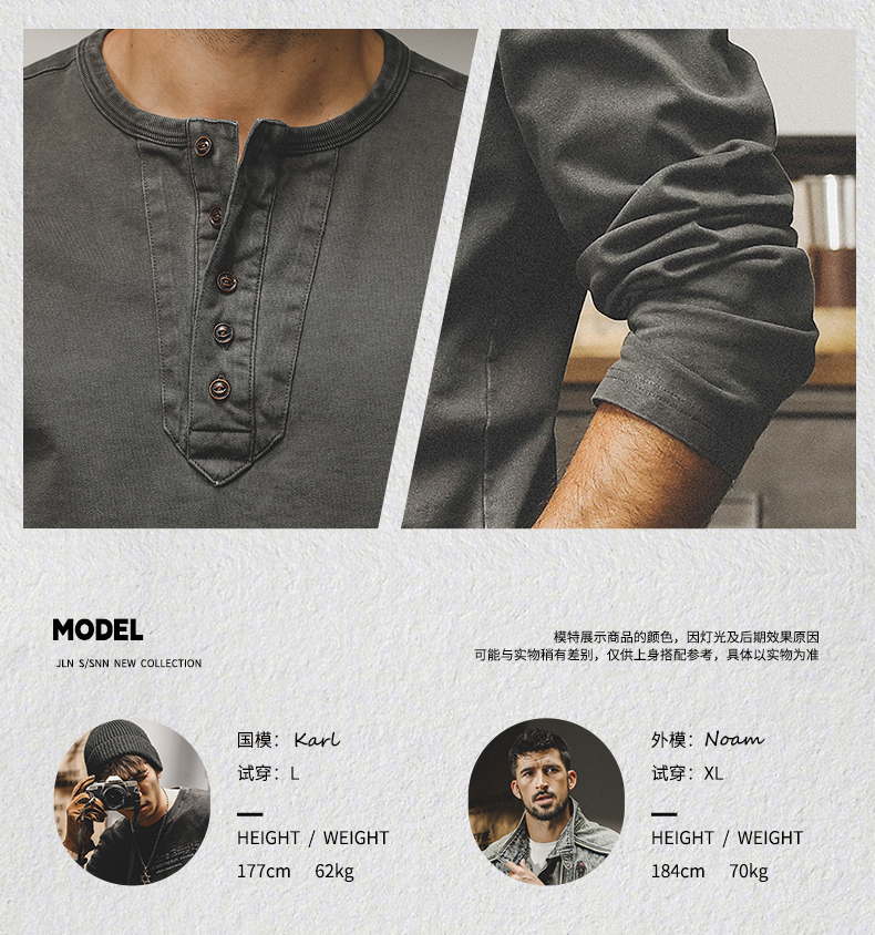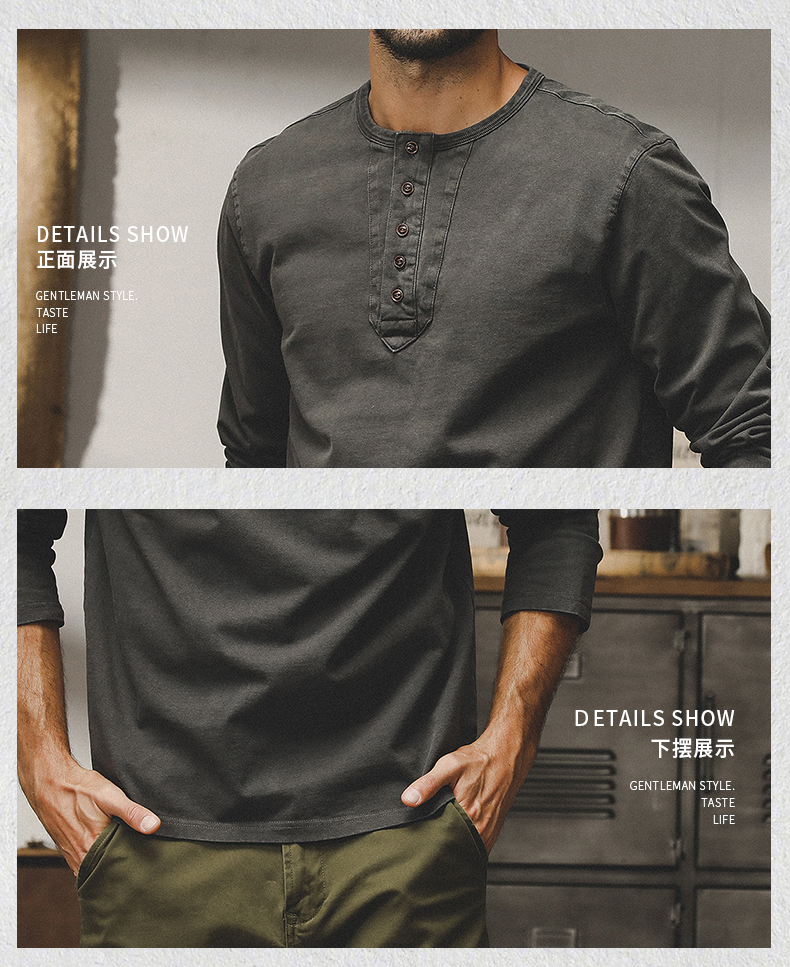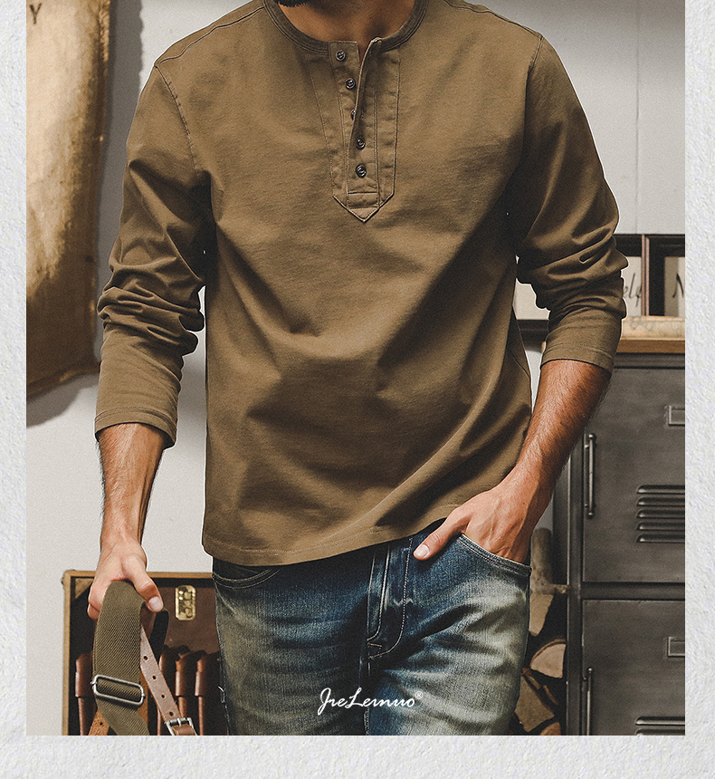 아메리칸 스타일 레트로 긴팔 티셔츠 남자 2024 새로운 유행 브랜드 루즈 헨리 칼라 탑 남자 가을 퓨어 코튼 티셔츠스토어 가기