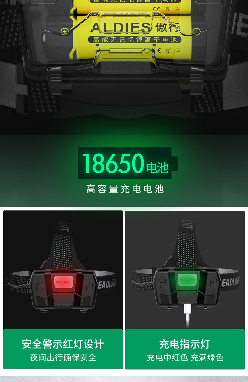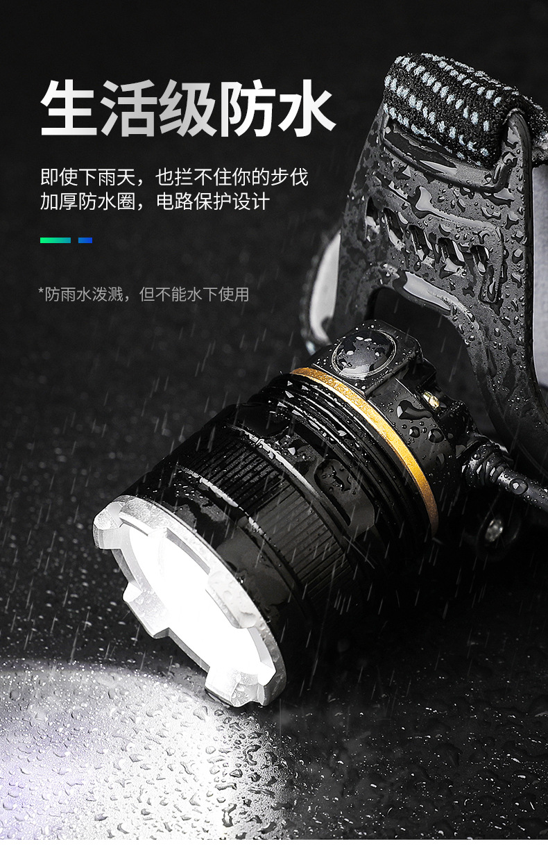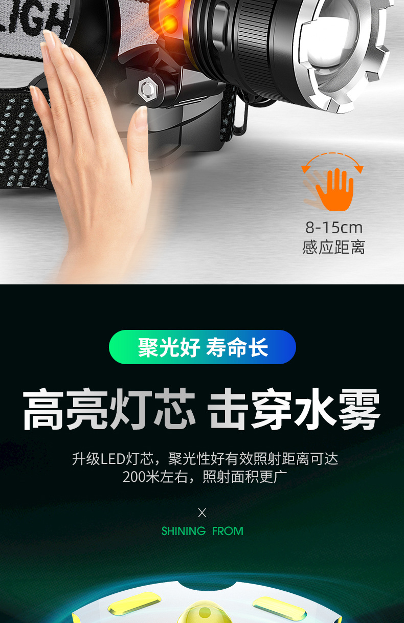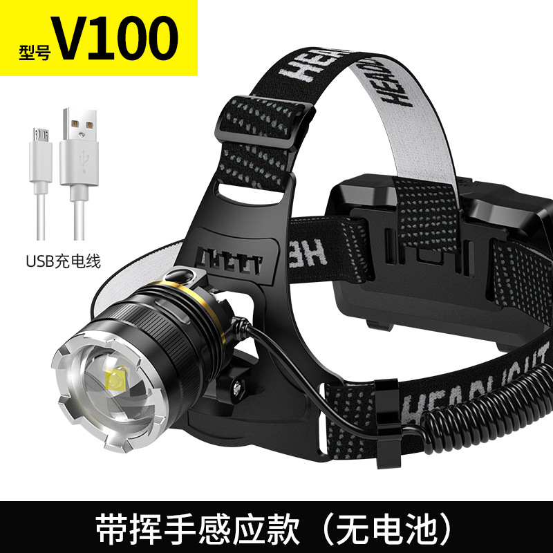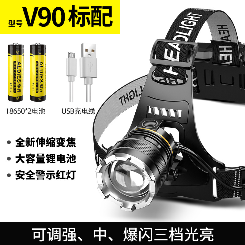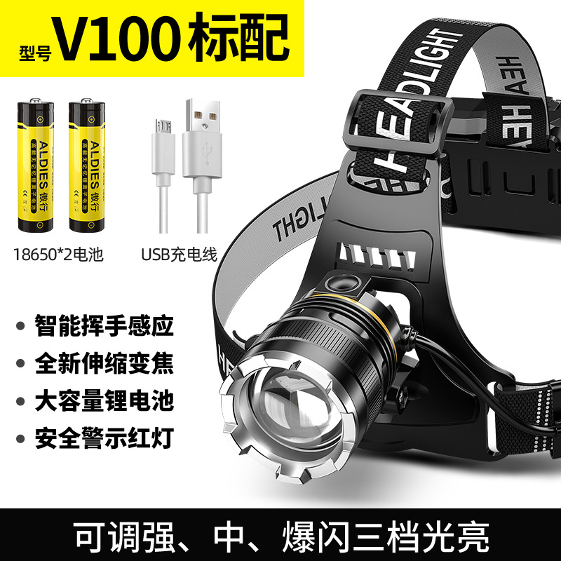 LED 듀얼 리튬 배터리 감지 줌 기능 강한 빛 충전식 야간 낚시용 헤드램프 강한 빛 줌 기능