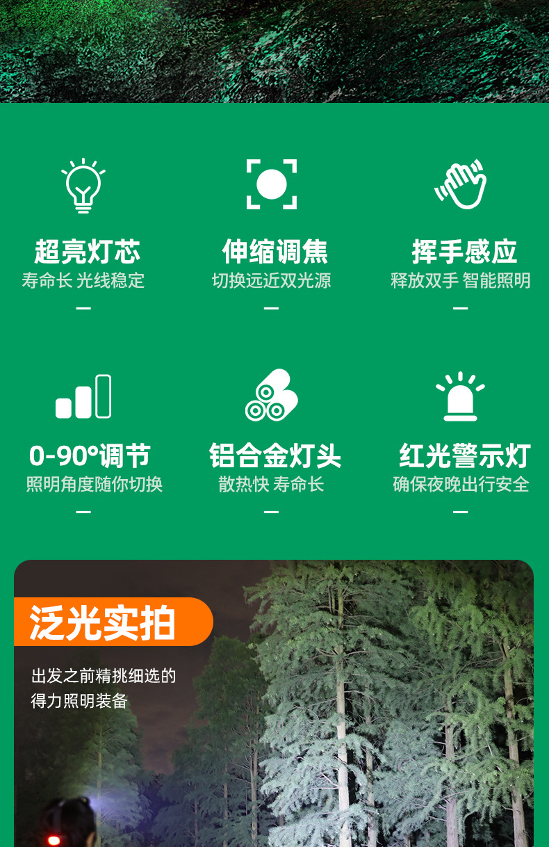 LED 듀얼 리튬 배터리 감지 줌 기능 강한 빛 충전식 야간 낚시용 헤드램프 강한 빛 줌 기능스토어 가기