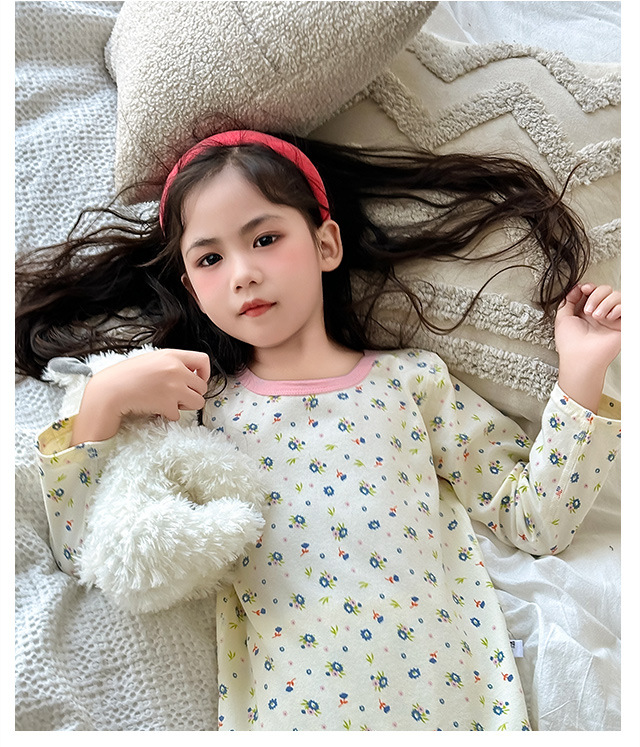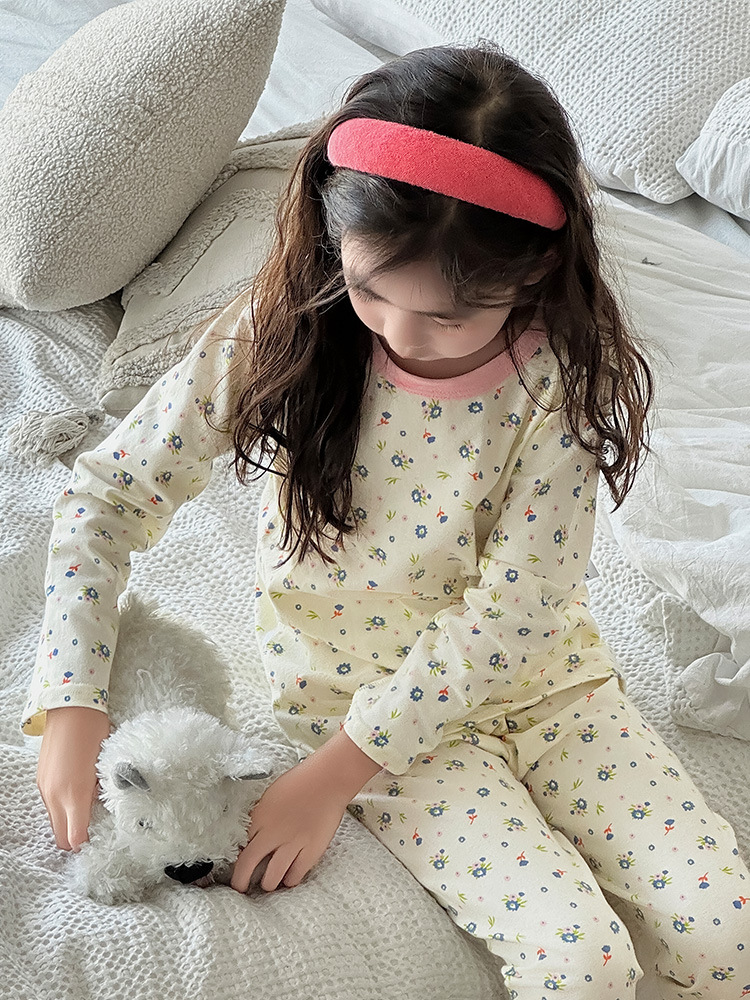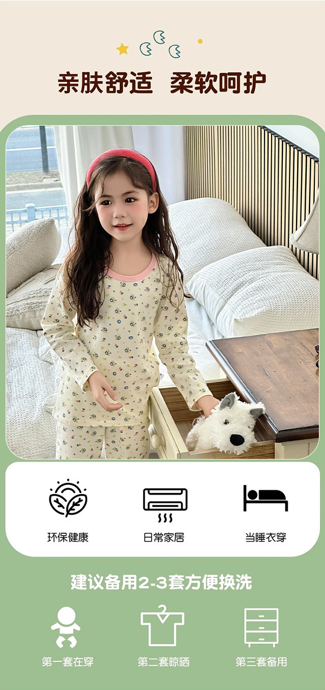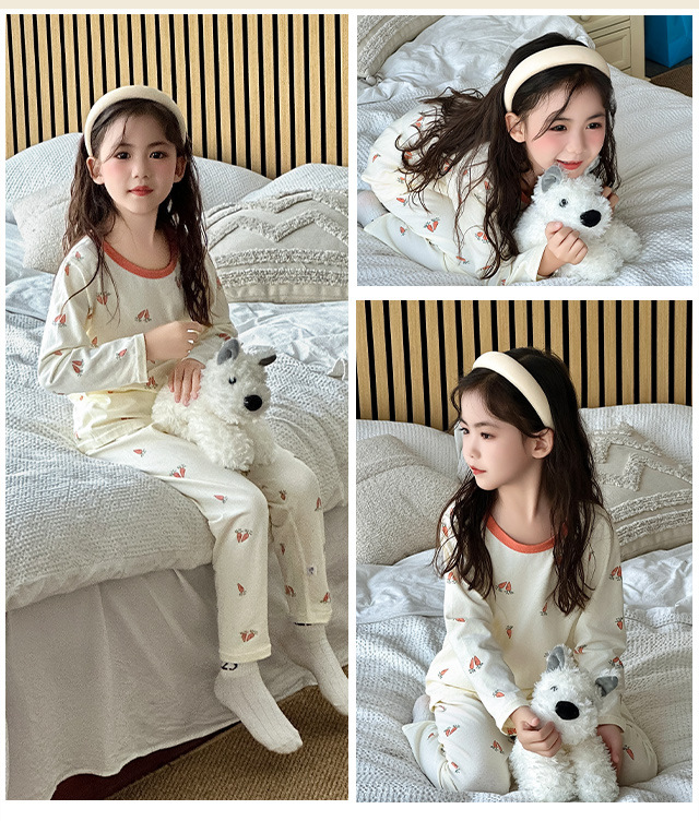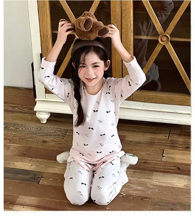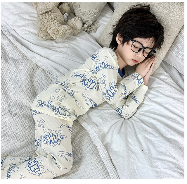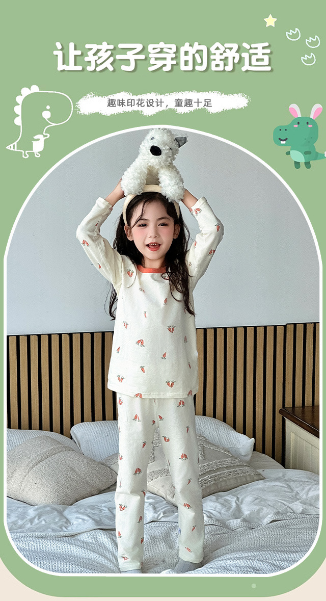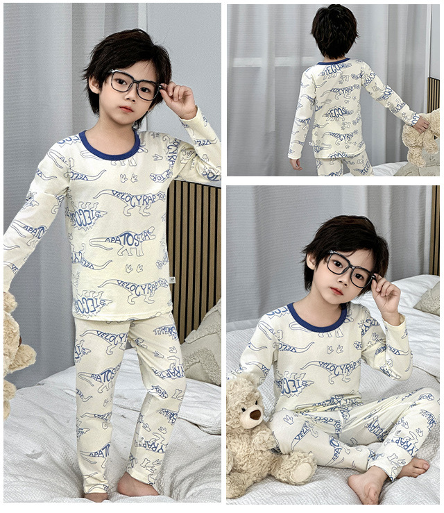 어린이 가을 옷과 바지 세트 라이크라 코튼 뼈없는 속옷 소년 잠옷 소녀 클래스 순면 홈 옷스토어 가기