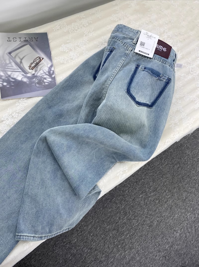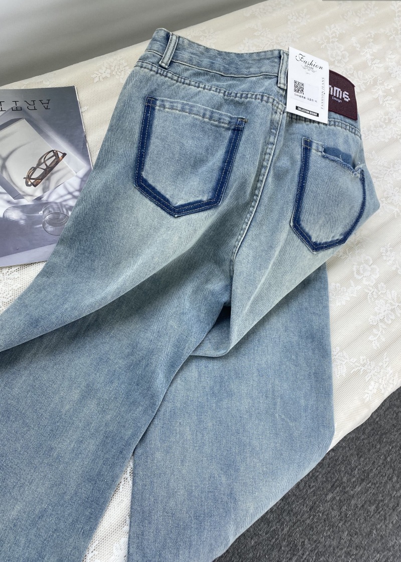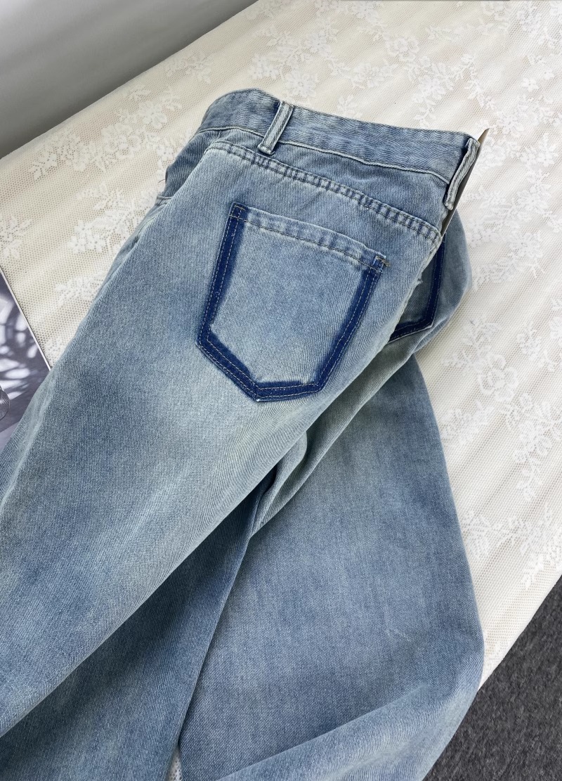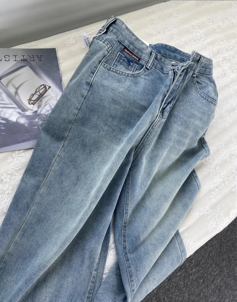 대조적 높은 허리 스트레이트 청바지 여자 2024 년 새 한국식 느슨한 슬리밍 올매치 좁은 넓은 다리 트렌디 팬츠스토어 가기