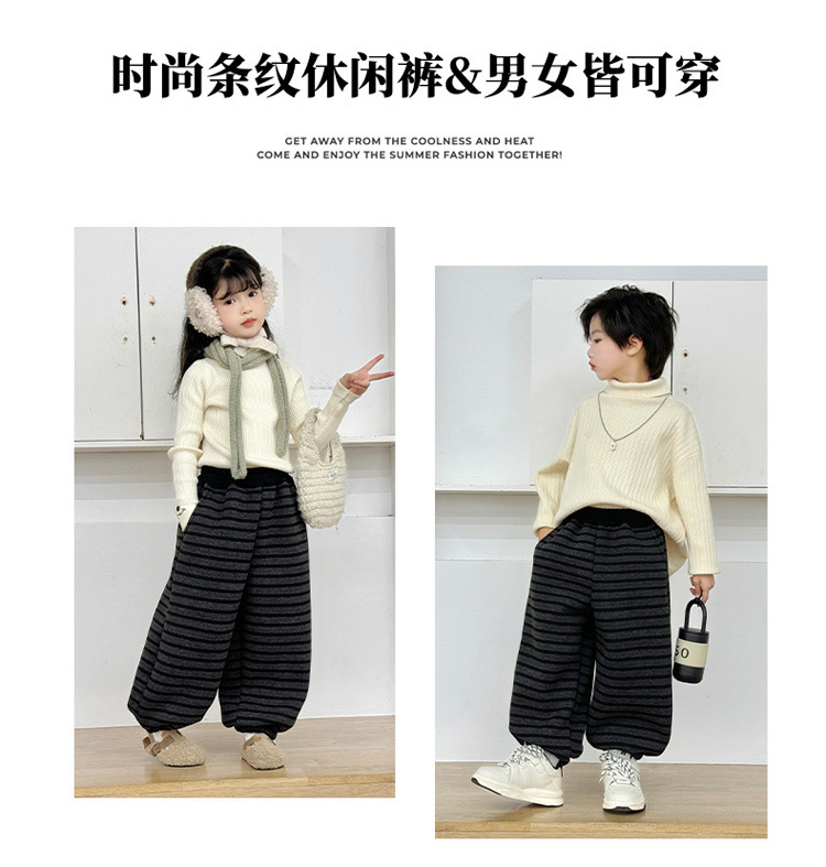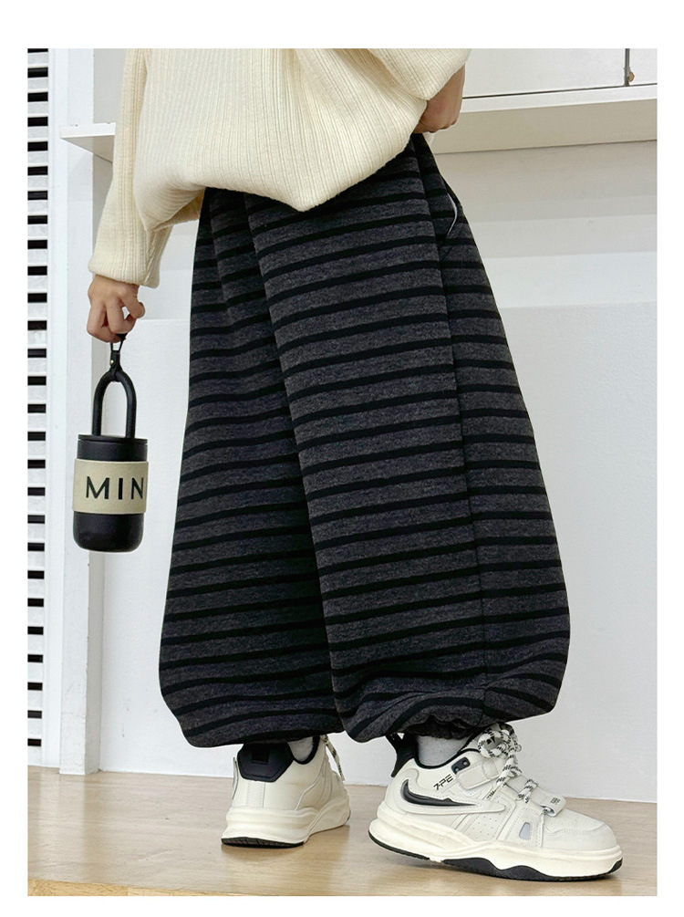 • 남아 및 여아용 찹쌀 줄무늬 플리스 팬츠