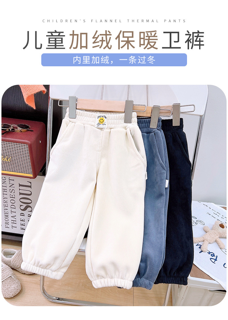 어린이 기모 바지 소년 두꺼운 스포츠 바지 2024 새로운 여자 운동복 중 큰 어린이 캐주얼 따뜻한 바지