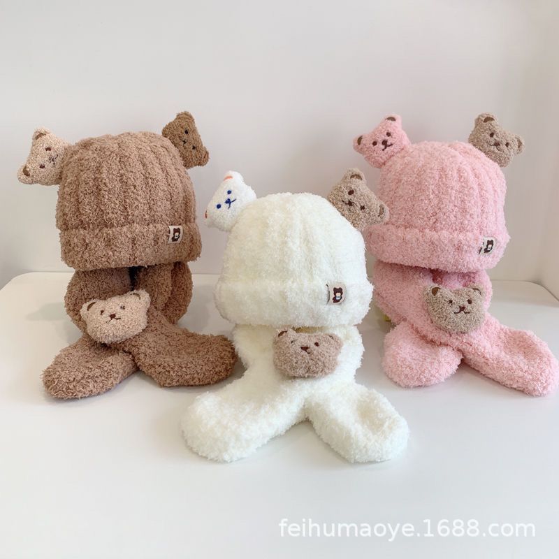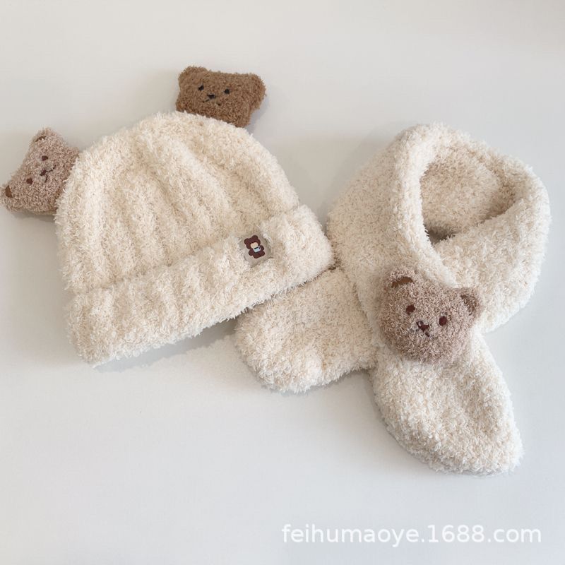 아기 모자 겨울 소년과 소녀 아기 봉제 모자 스카프 세트 따뜻한 귀 보호 가을과 겨울 어린이 울 모자스토어 가기