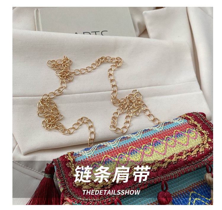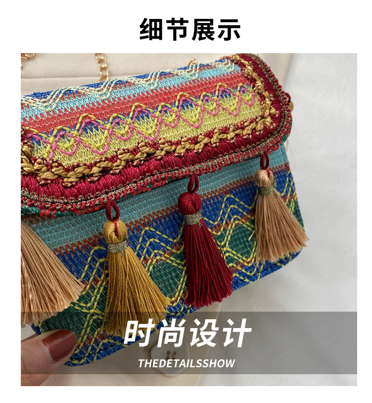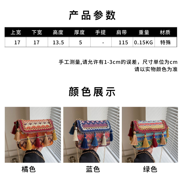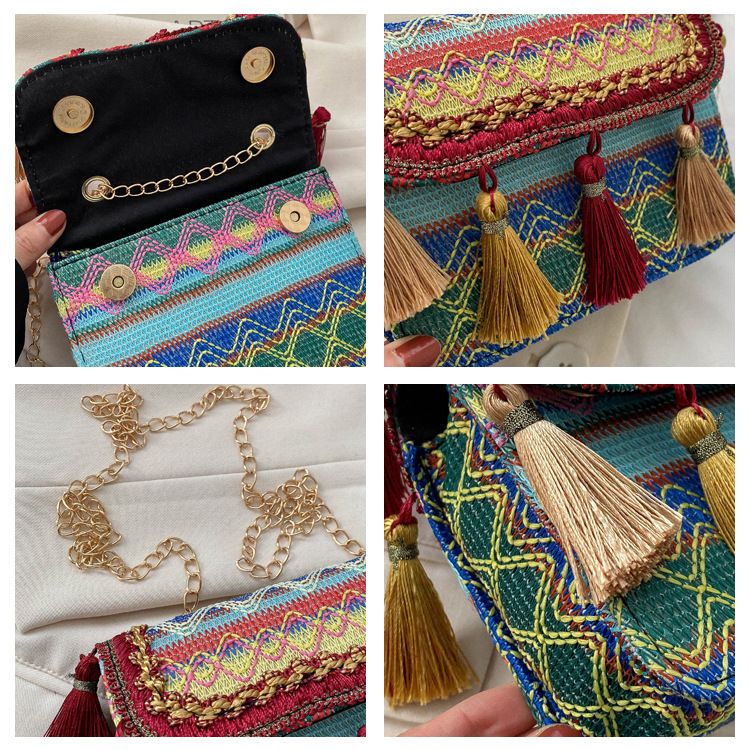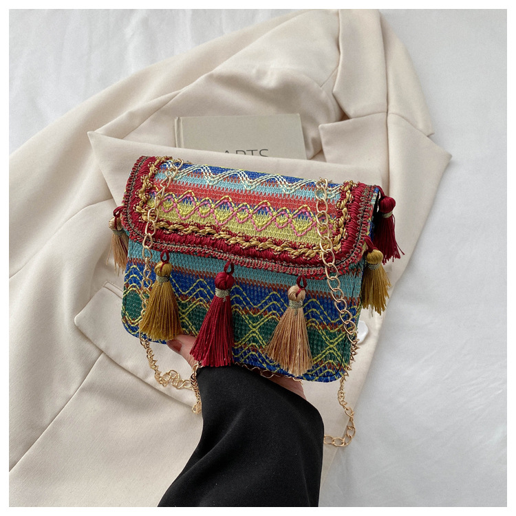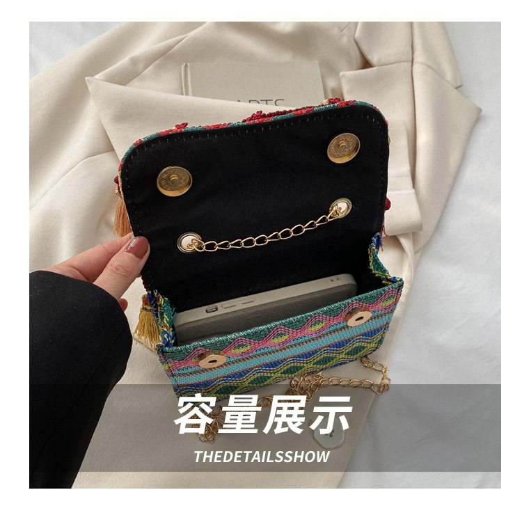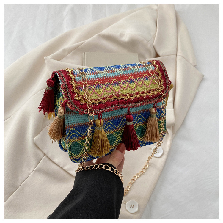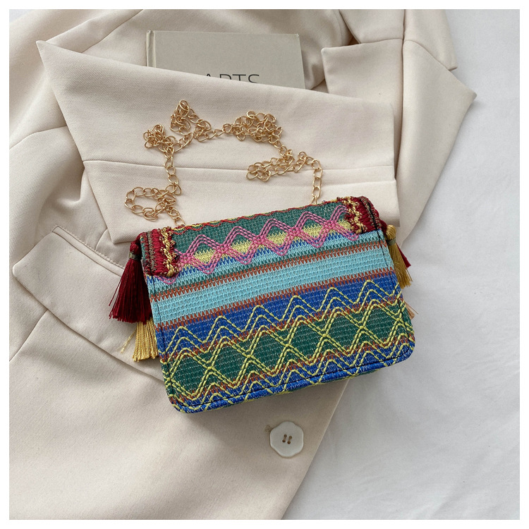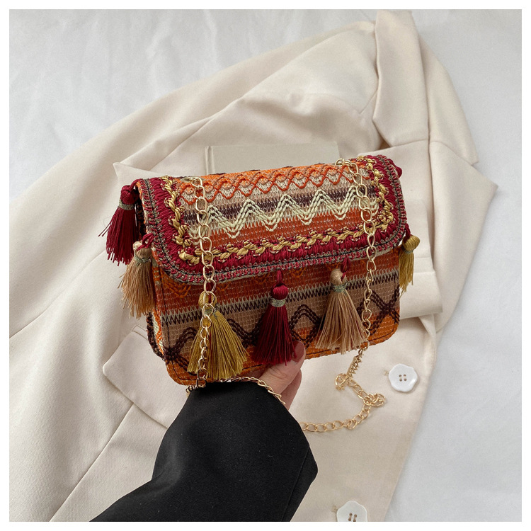 어깨 가방 여성 가방 2024 새로운 체인 어깨 가방 여성 민족 스타일 술 작은 광장 가방 개인화 된 크로스 바디 백 국경스토어 가기