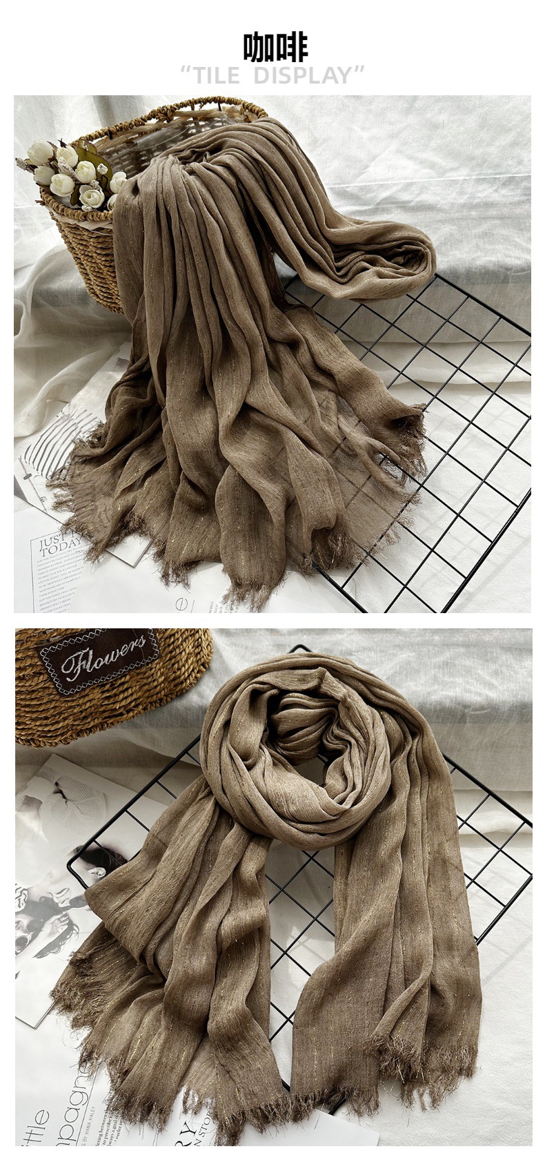 중동 스타일 가을 모달 스카프 여성용 단색 얇은 스카프 금사 직사각형 스카프스토어 가기
