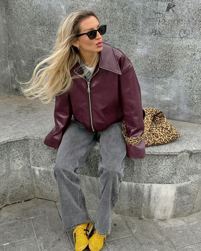 오토바이 스타일 가죽 자켓 2025 유럽과 미국의 가을, 겨울 새로운 느슨한 코트 패션 크로스 보더 가죽 코트 새로운 여성 코트스토어 가기