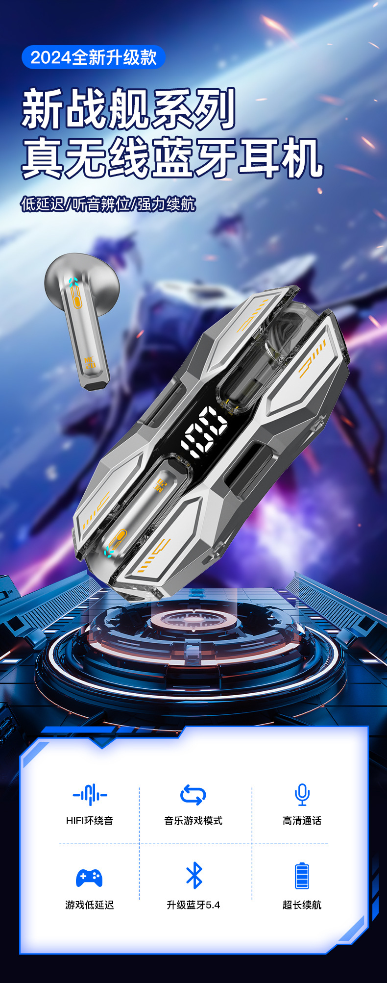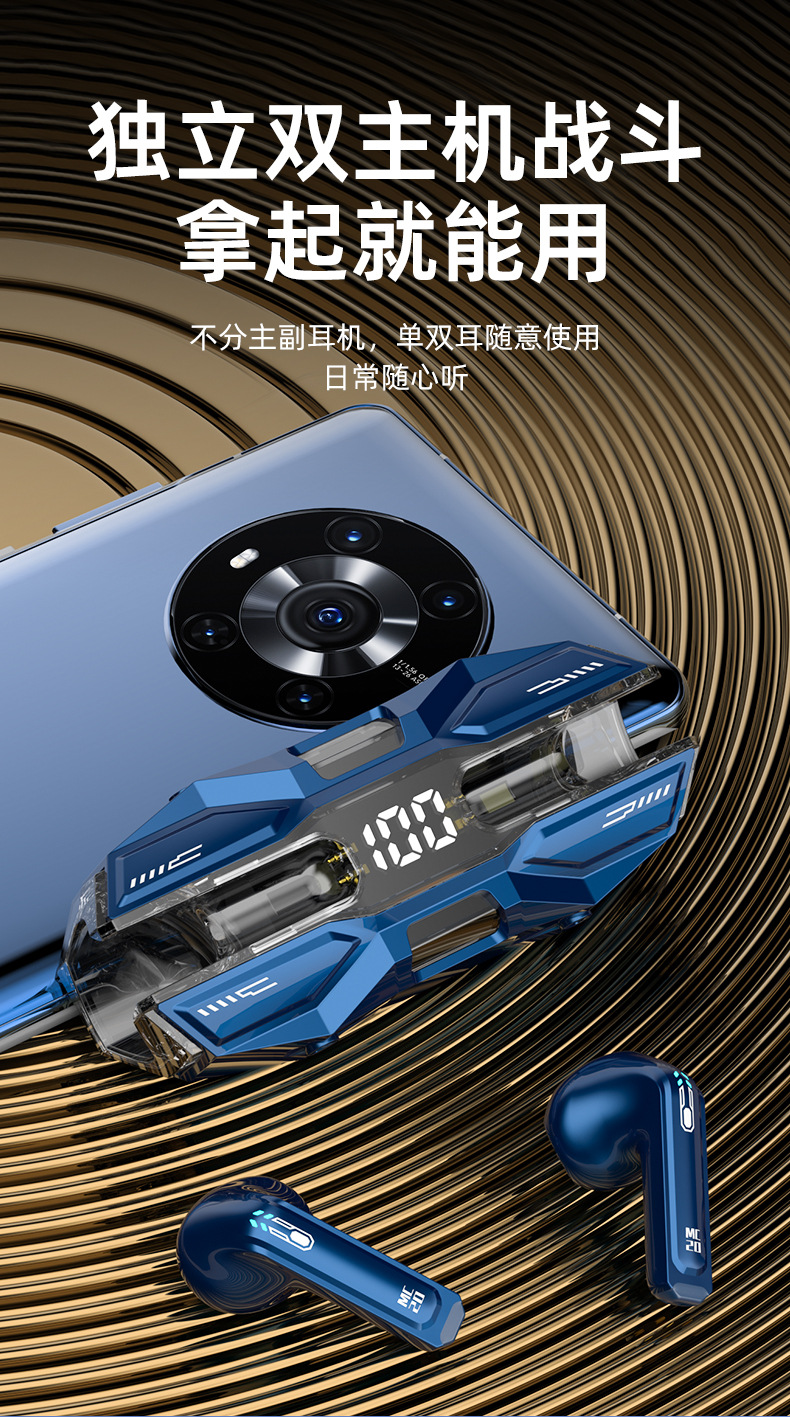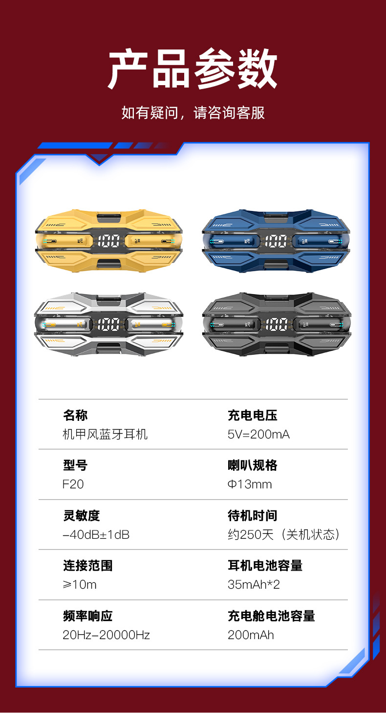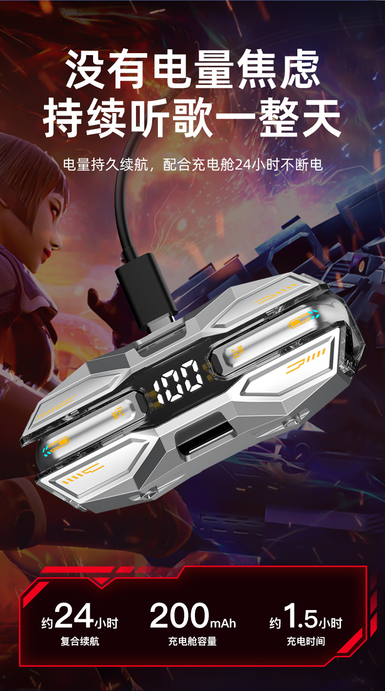 화창북 인기상품 F20 무선 이어폰 전투함 블루투스 이어폰 세미 인이어 TWS 게임용 이어폰 메카 스타일