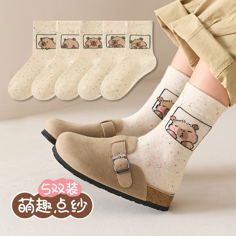 가을과 겨울 새로운 어린이 양말 중간 튜브 면 양말 소년 소녀를위한 귀여운 땀 흡수성 원사 아기 독특한 면 양말 유행 어린이 양말스토어 가기