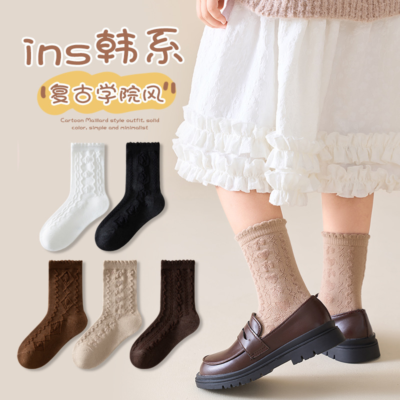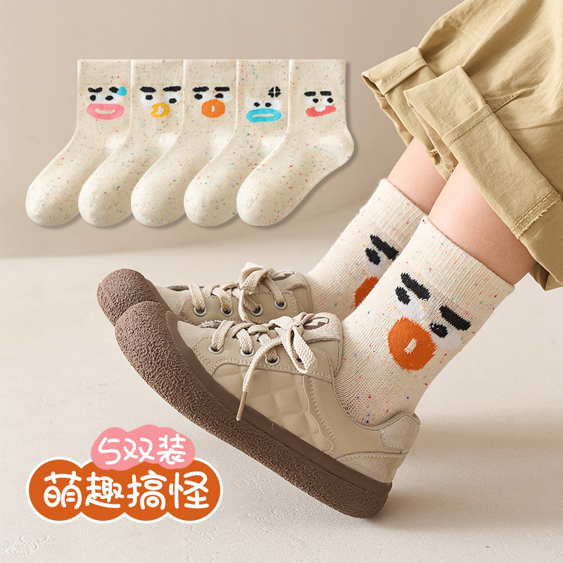가을과 겨울 새로운 어린이 양말 중간 튜브 면 양말 소년 소녀를위한 귀여운 땀 흡수성 원사 아기 독특한 면 양말 유행 어린이 양말